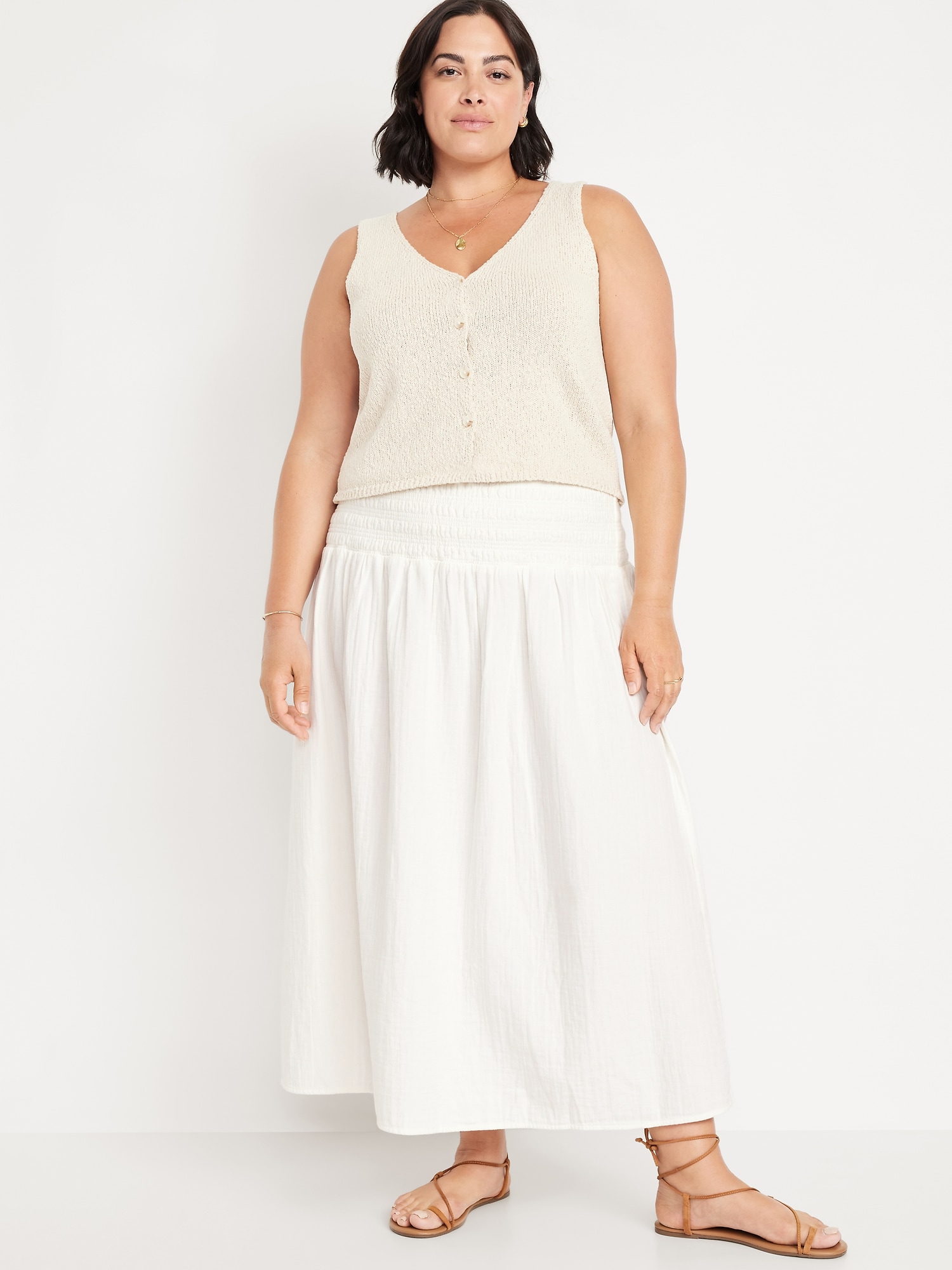 High-Waisted Crinkle Gauze Smocked Maxi Skirt