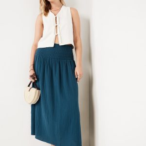 High-Waisted Crinkle Gauze Smocked Maxi Skirt: smocked high waistband, shirred detail, easy pull-on style, #766931