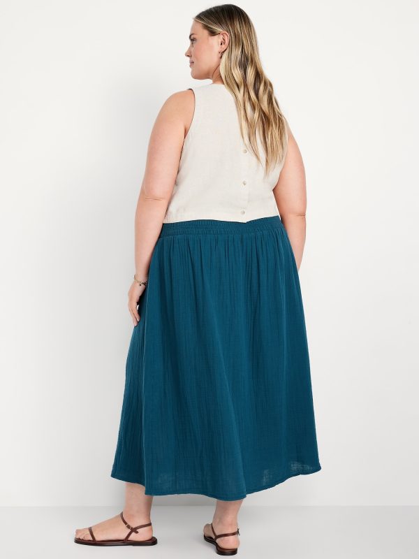 High-Waisted Crinkle Gauze Smocked Maxi Skirt: smocked high waistband, shirred detail, easy pull-on style, #766931