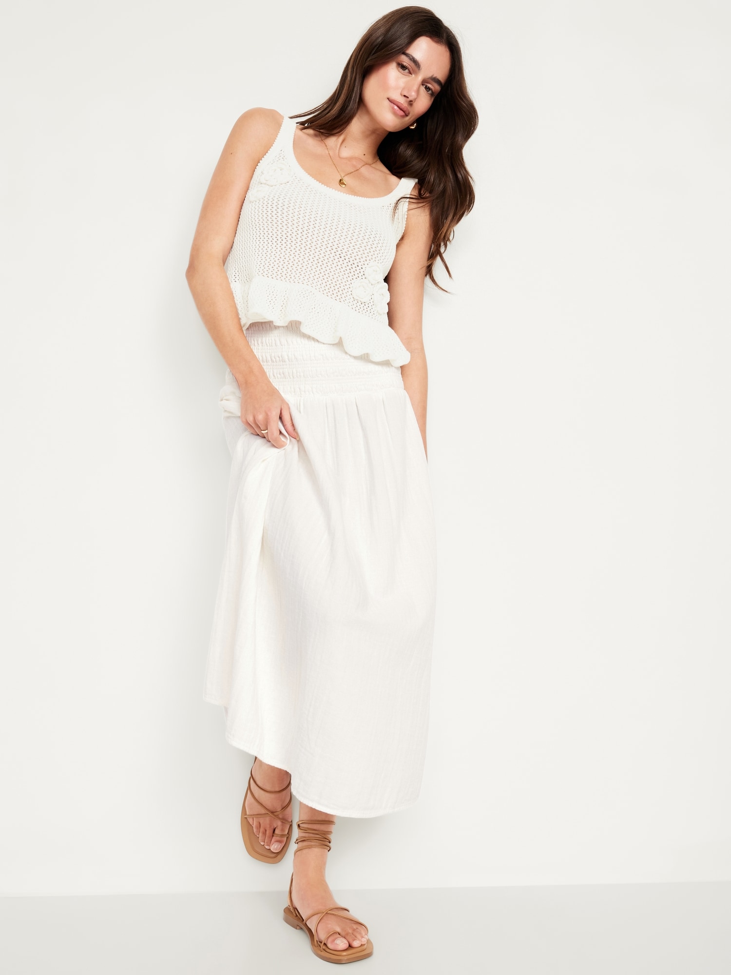 High-Waisted Crinkle Gauze Smocked Maxi Skirt