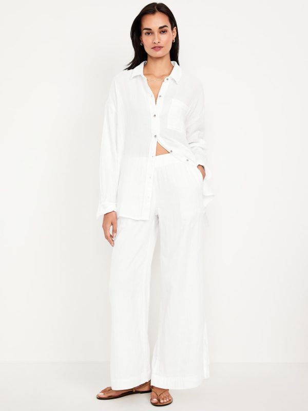 High-Waisted Crinkle Gauze Super Wide-Leg Pants