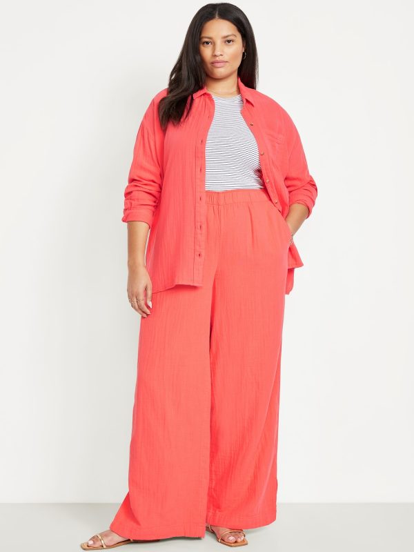 High-Waisted Crinkle Gauze Super Wide-Leg Pants
