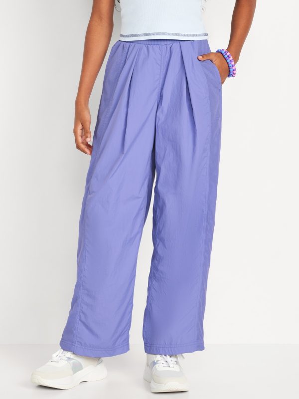 High-Waisted Crinkle Wide-Leg Pants for Girls: elasticized waistband, high rise, on-seam pockets, wide leg, #696557
