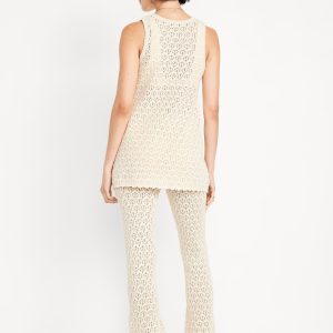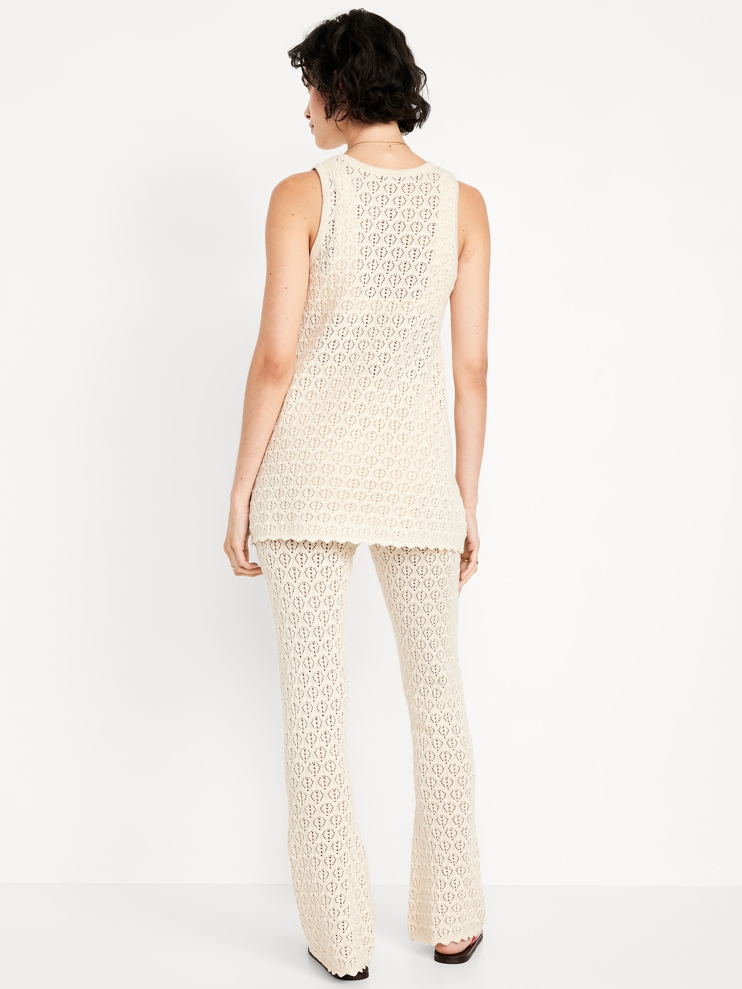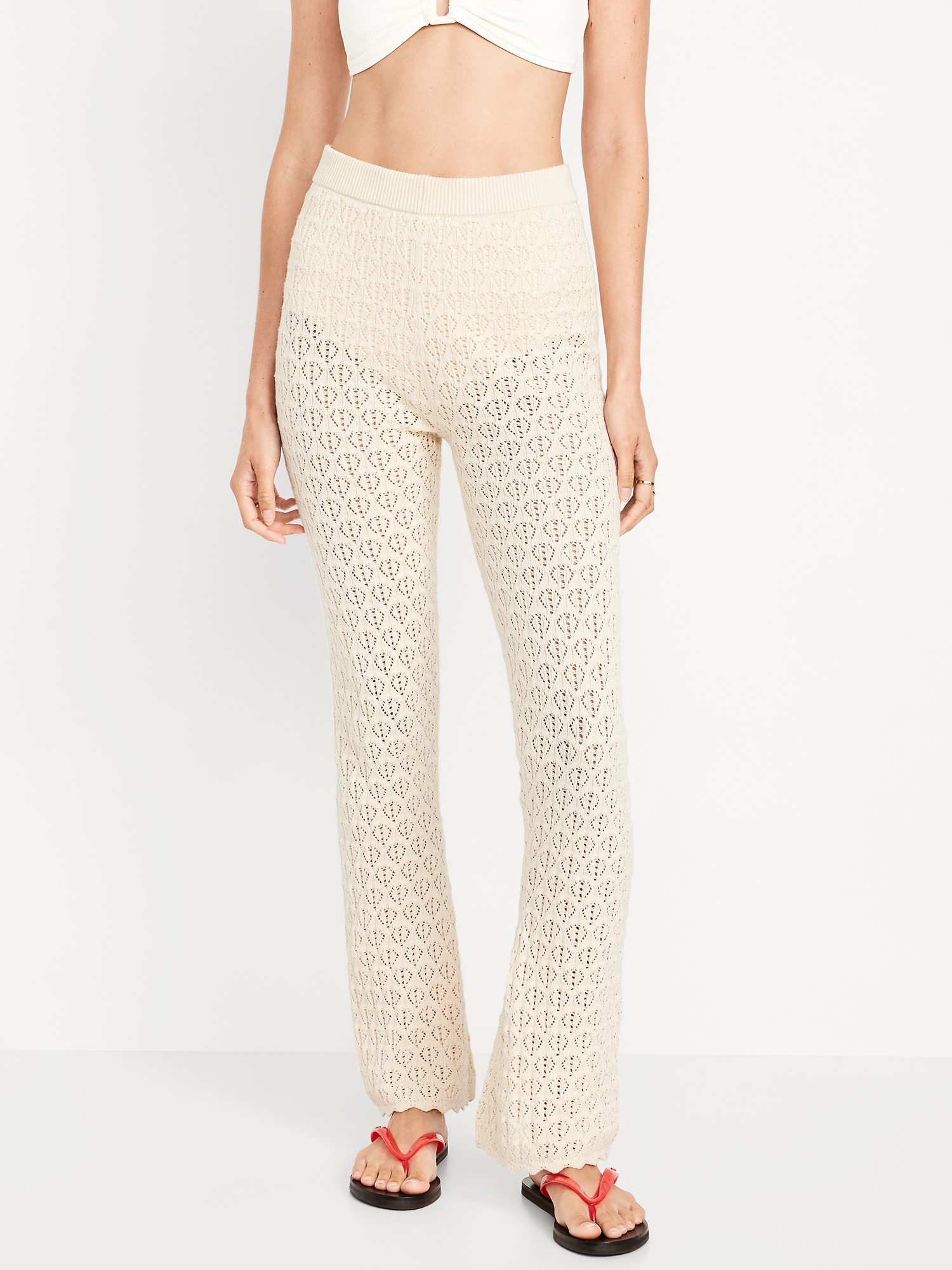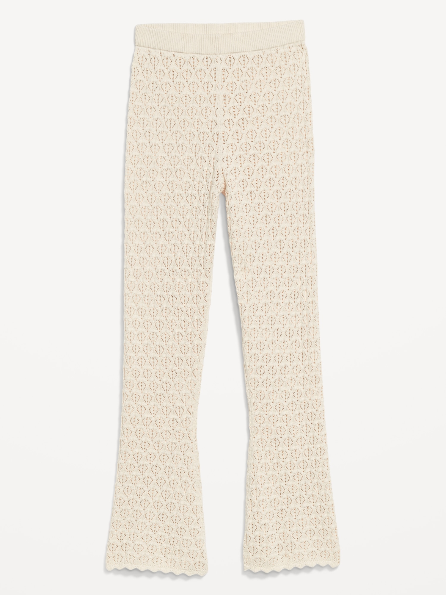 High-Waisted Crochet Flare Pants: pull-on elastic waistband, scallop hem, pair back to our matching crochet top, #761571