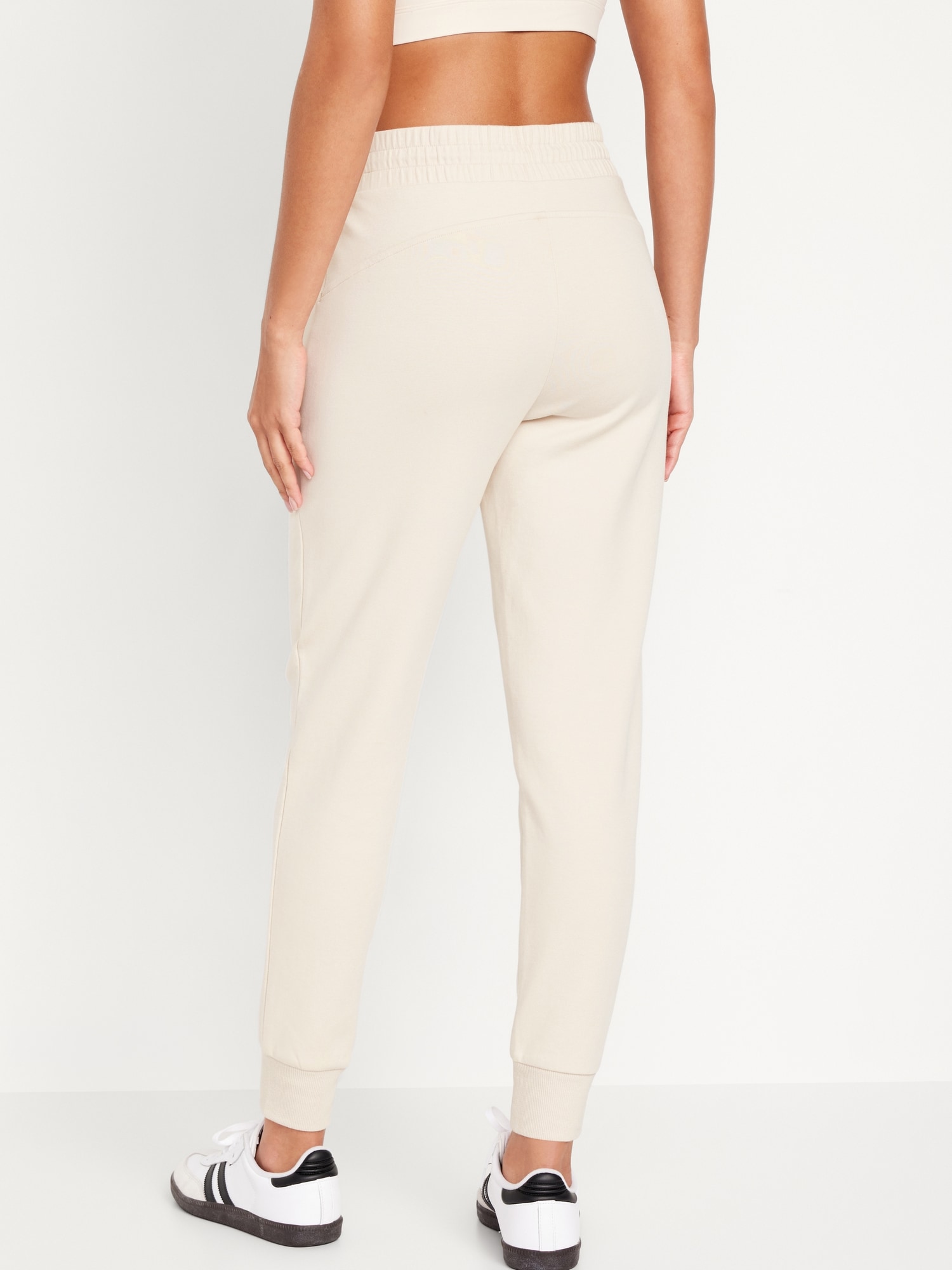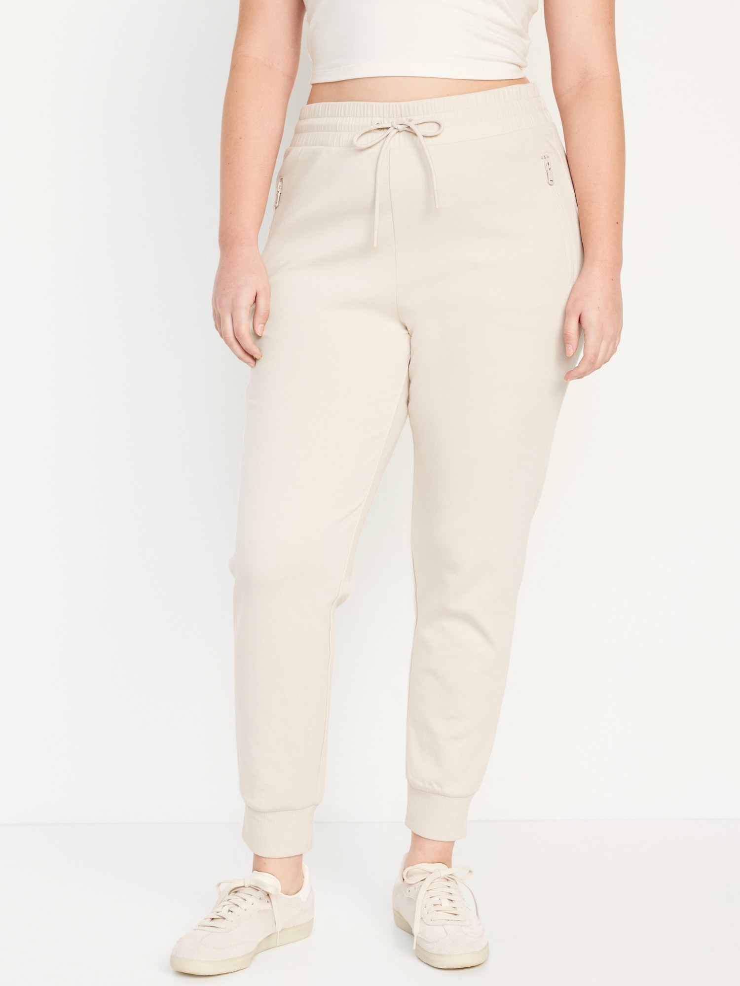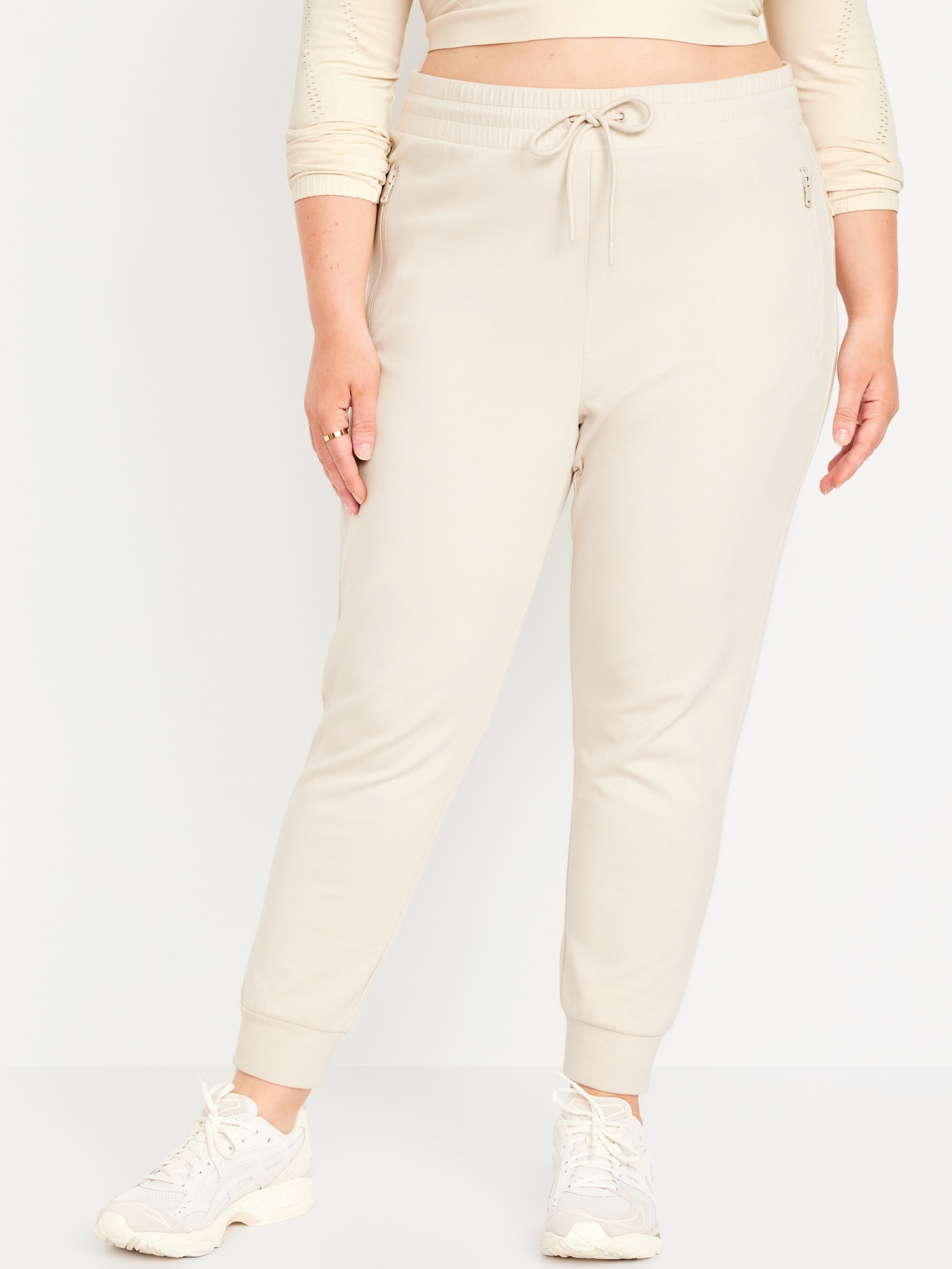 High-Waisted Dynamic Fleece Jogger Sweatpants: Featuring Dynamic Fleece. Soft, smooth fleece plus made-to-move stretch.elastic-drawstring waist, faux fly, zippered hip pockets, cuffed leg, available in maternity sizes, #813448