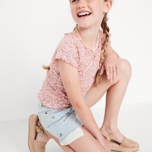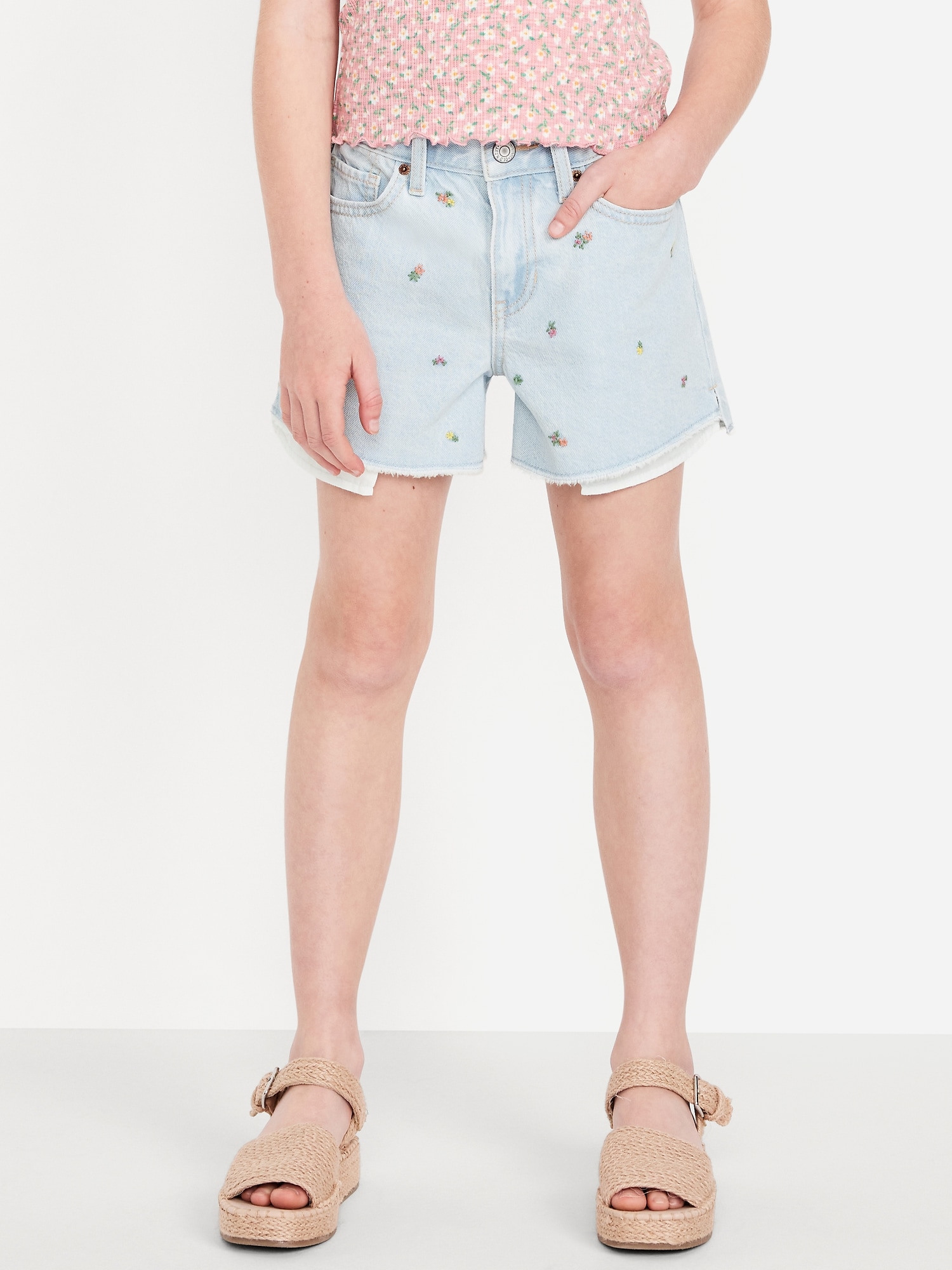 High-Waisted Embroidered Frayed-Hem Jean Shorts for Girls