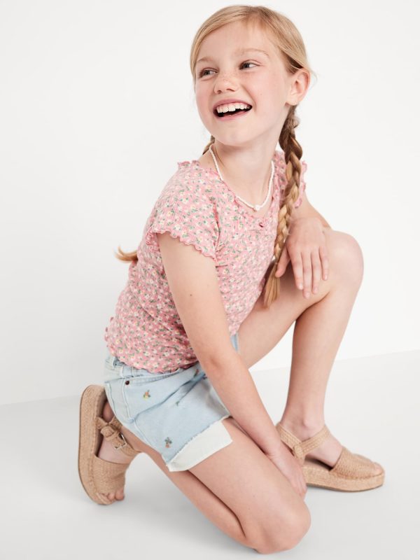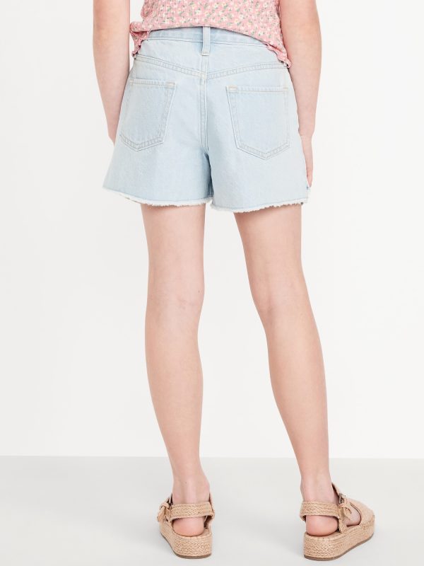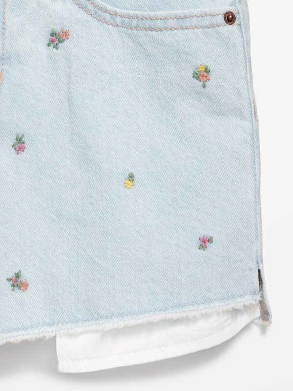 High-Waisted Embroidered Frayed-Hem Jean Shorts for Girls