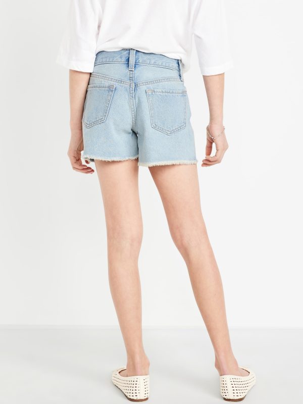 High-Waisted Embroidered Frayed-Hem Jean Shorts for Girls