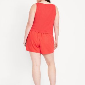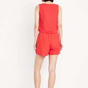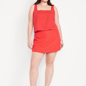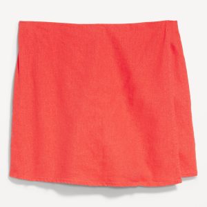 High-Waisted Faux-Wrap Linen-Blend Mini Skort: faux-wrap front, elastic back waist, built-in shorts, #766917