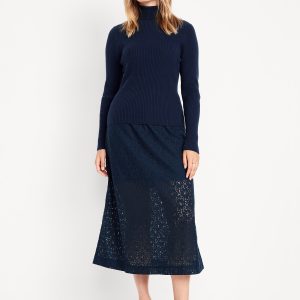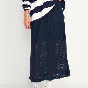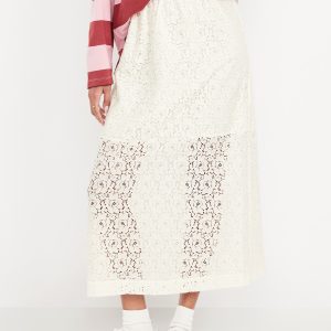 High-Waisted Lace Midi Skirt: elastic waistband, mini-length lining, easy pull-on style, #798241