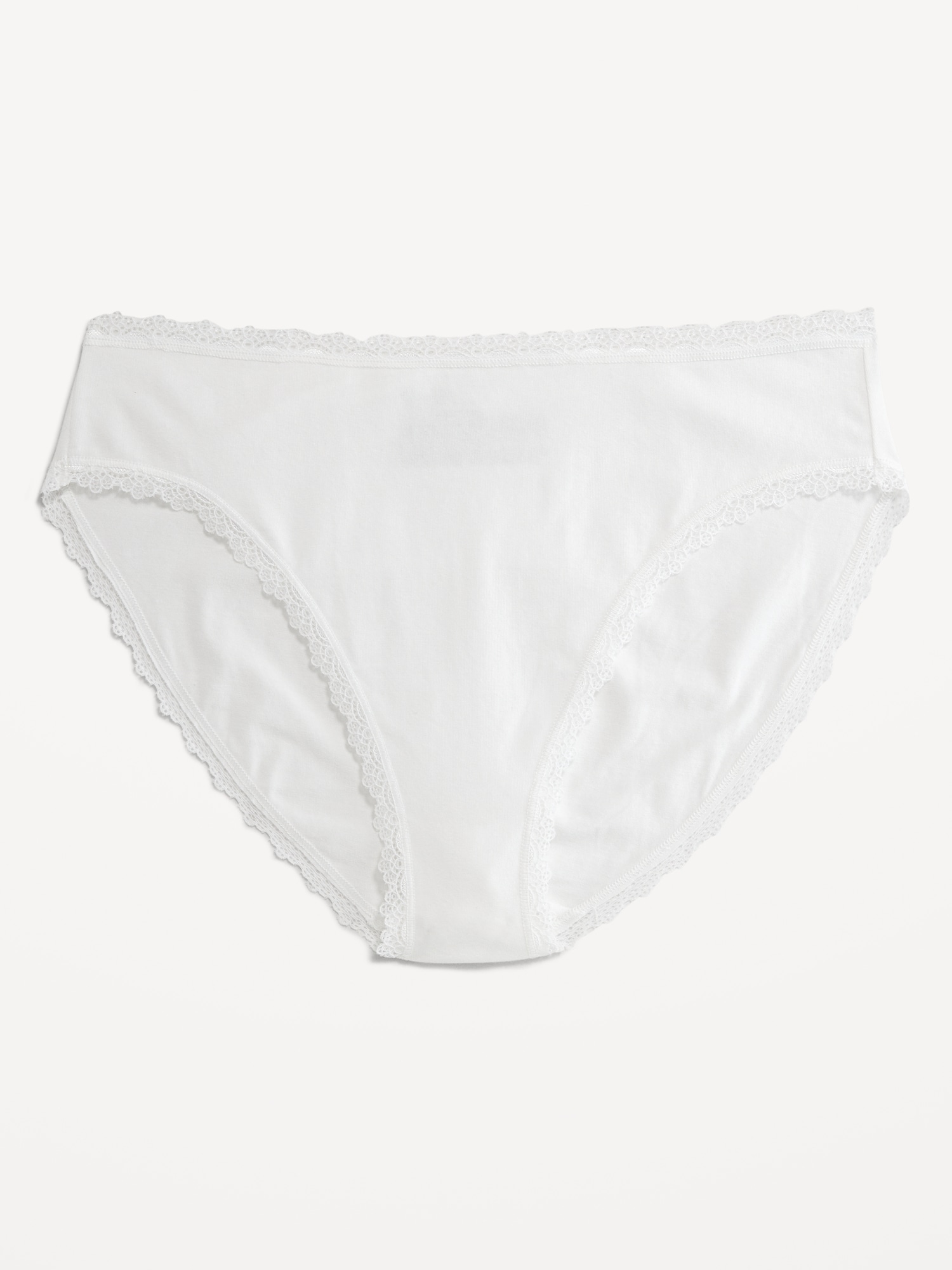 High-Waisted Lace-Trim Bikini Underwear: brushed-elastic waistband, elasticized leg, #575385