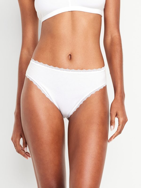 High-Waisted Lace-Trim Bikini Underwear: brushed-elastic waistband, elasticized leg, #575385