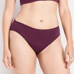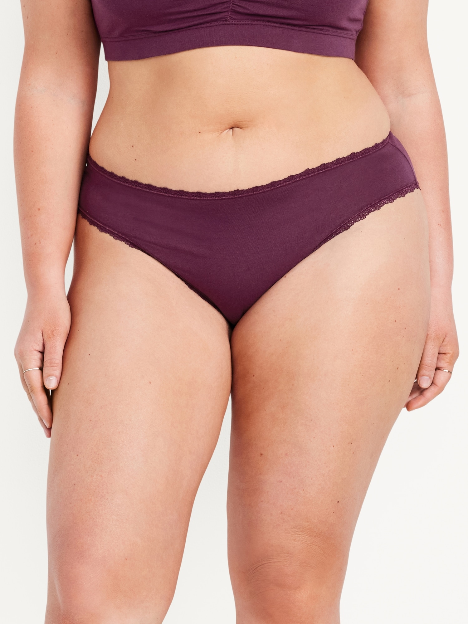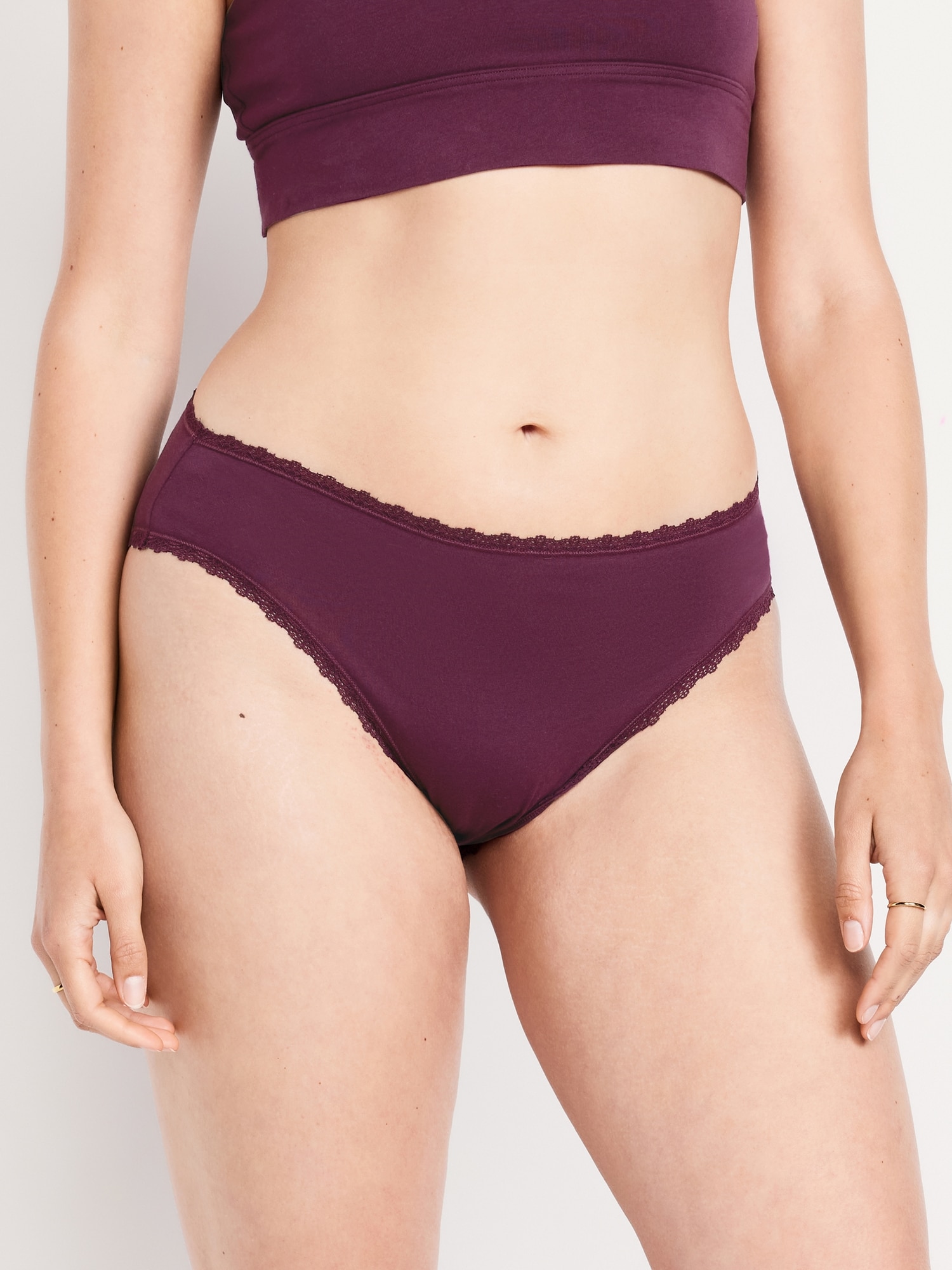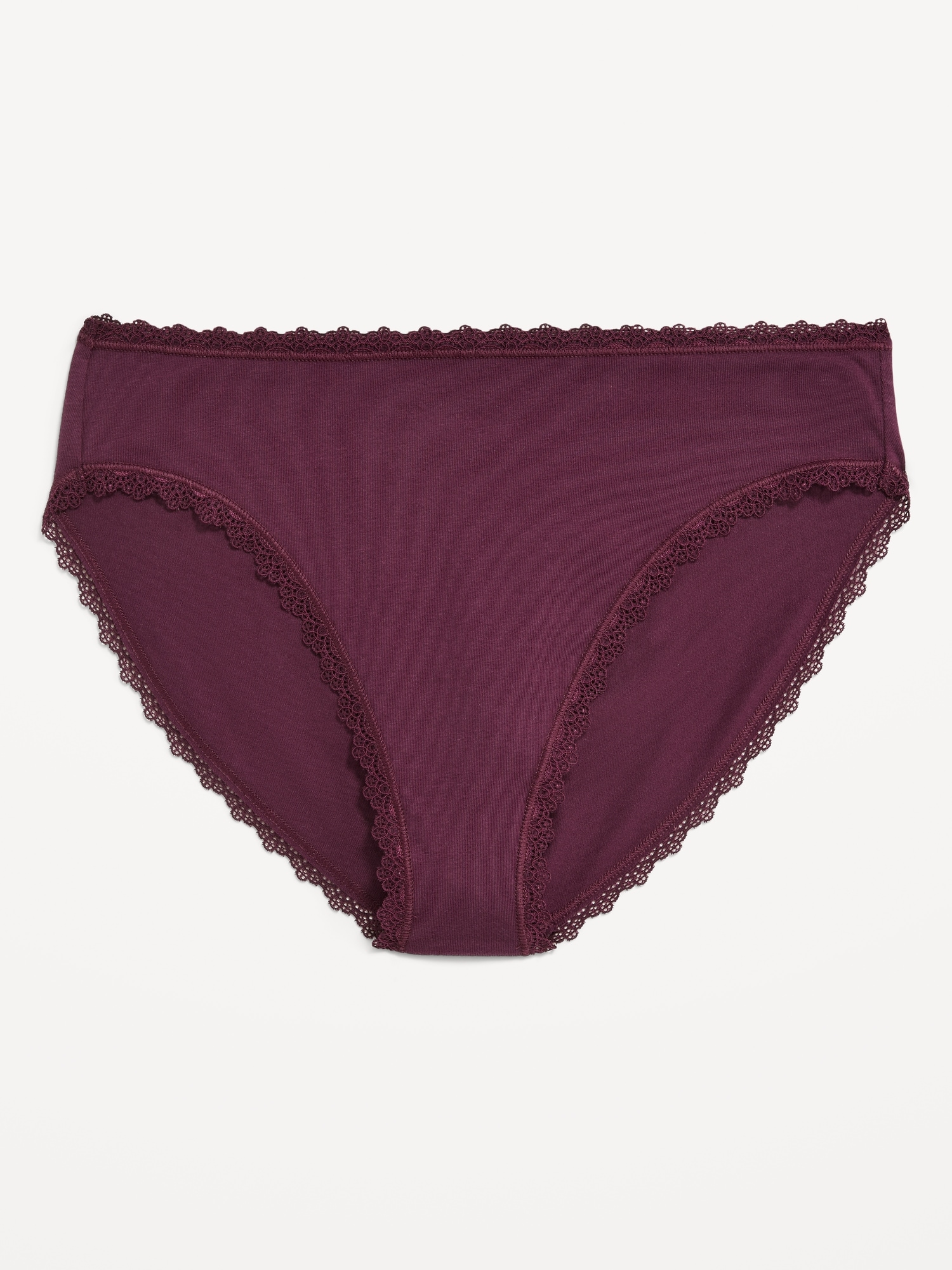 High-Waisted Lace-Trim Bikini Underwear: brushed-elastic waistband, elasticized leg, #575385