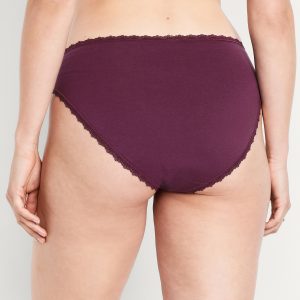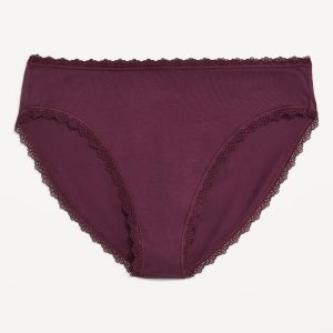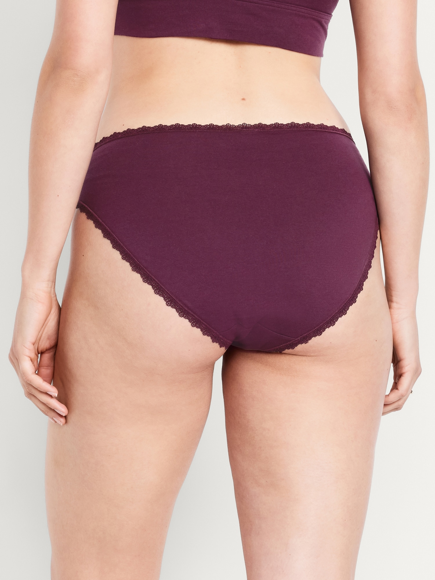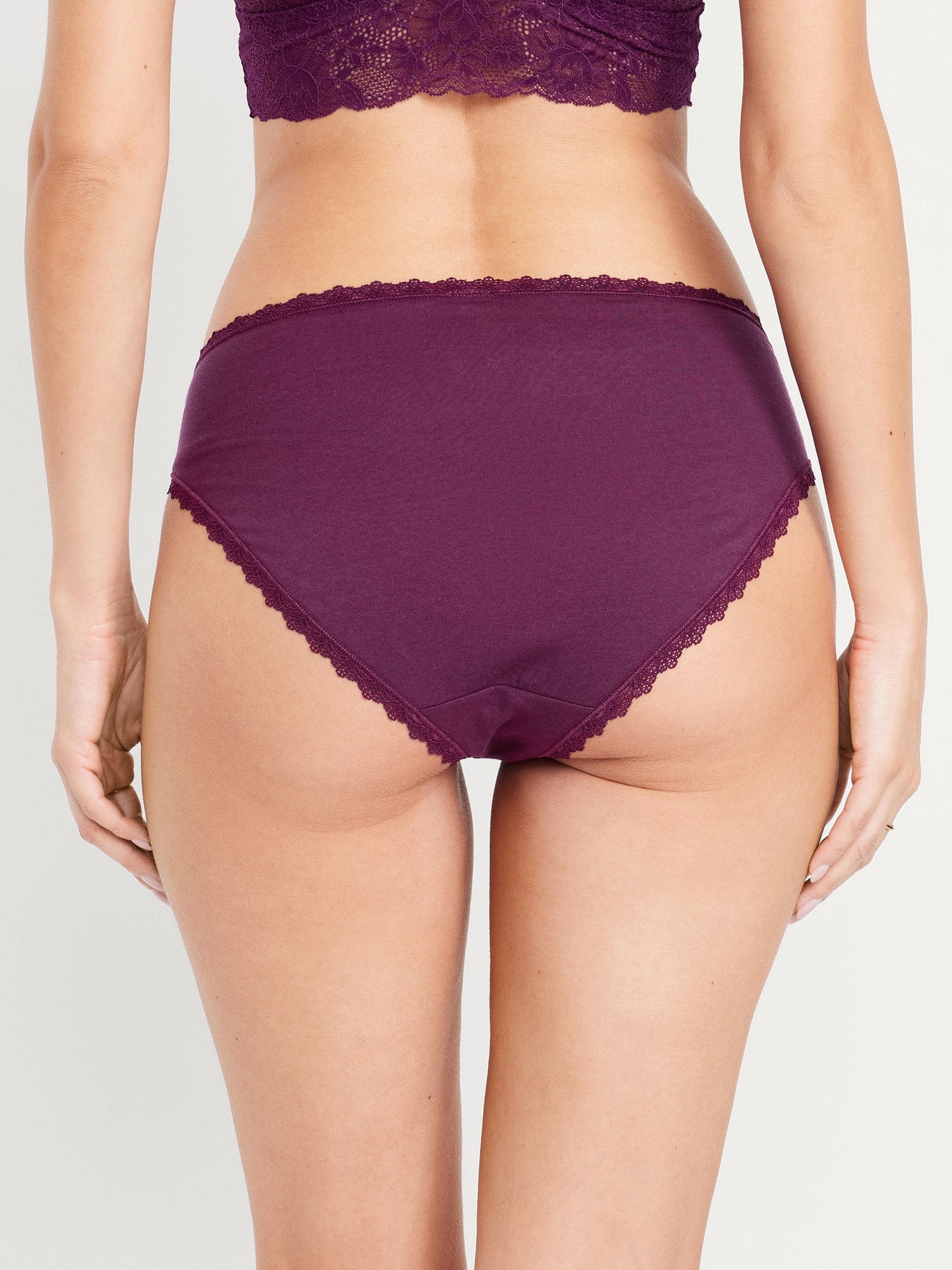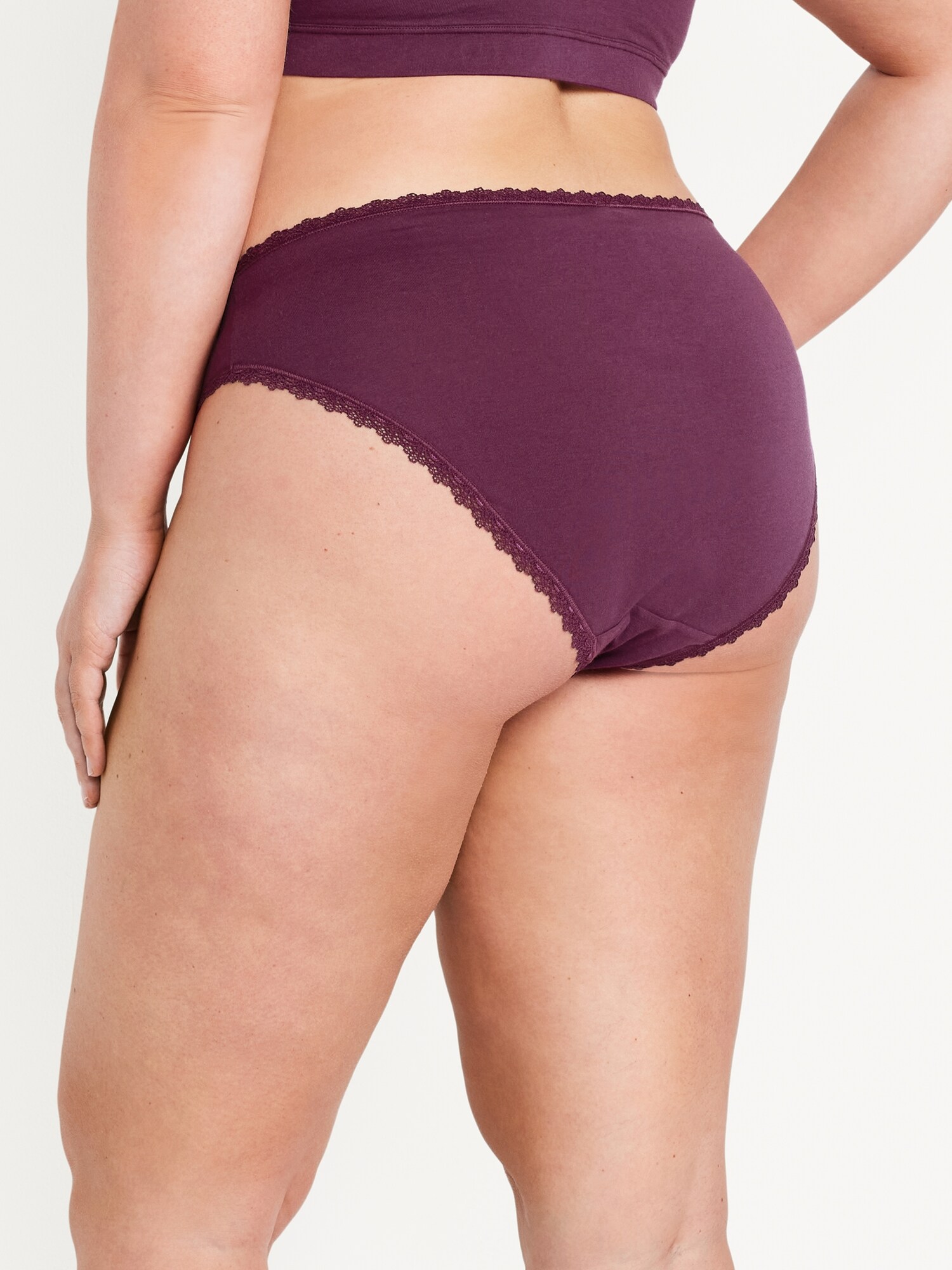 High-Waisted Lace-Trim Bikini Underwear: brushed-elastic waistband, elasticized leg, #575385