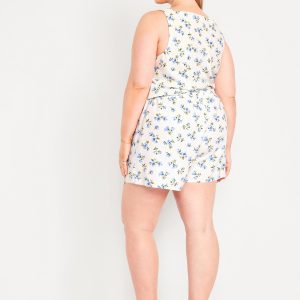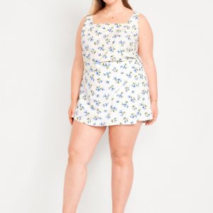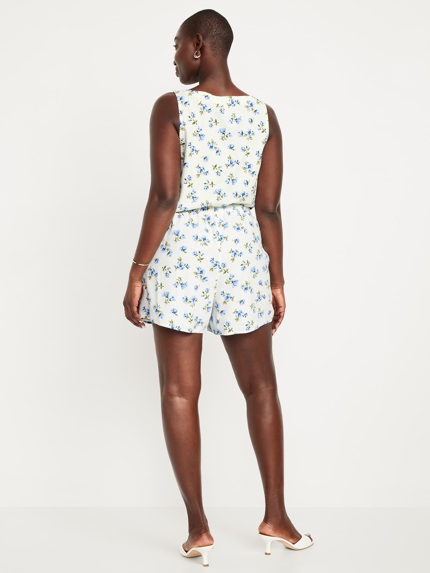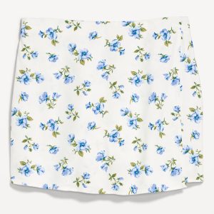 High-Waisted Linen-Blend Mini Skort: faux-wrap front, elastic back waist, built-in shorts, #766917