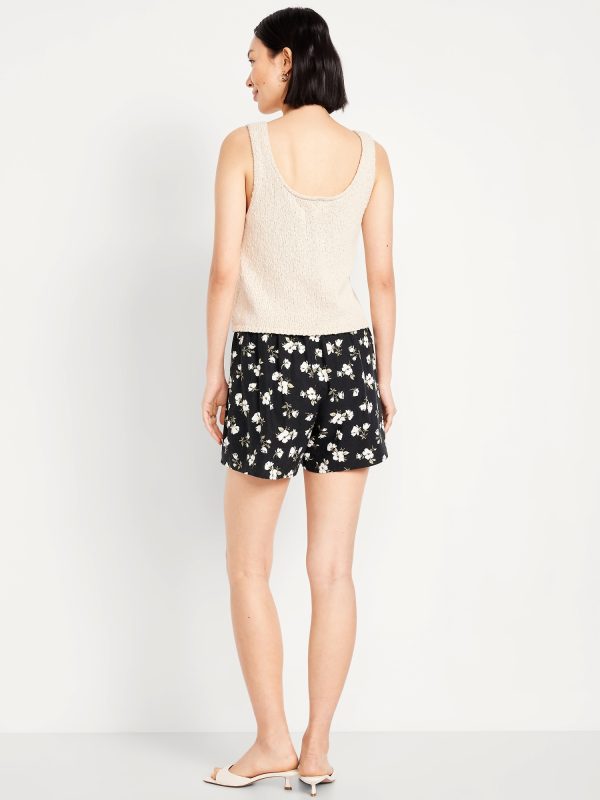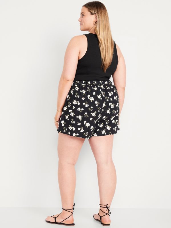 High-Waisted Linen-Blend Mini Skort: faux-wrap front, elastic back waist, built-in shorts, #766917