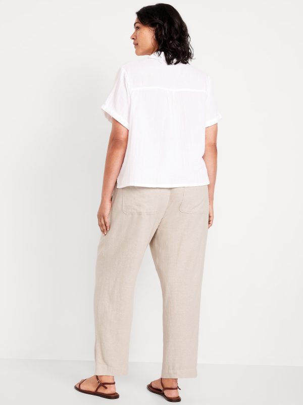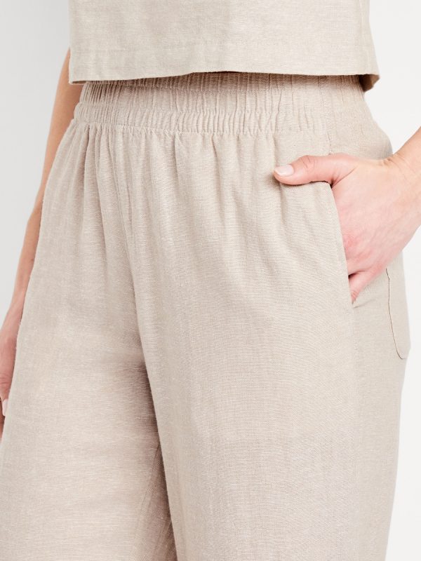 High-Waisted Linen-Blend Straight Ankle Pants: elasticized waistband, on-seam hip pockets, back patch pockets, straight leg, pull-on style, #683297