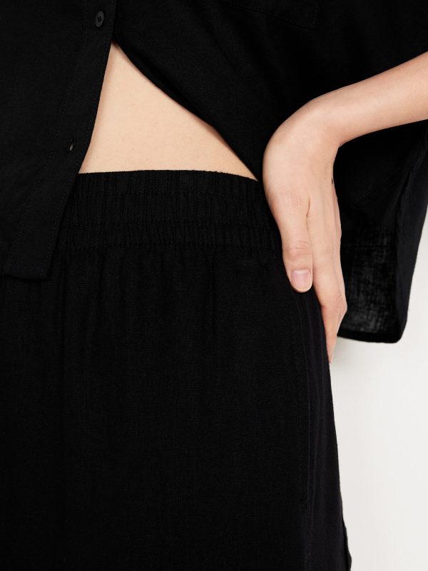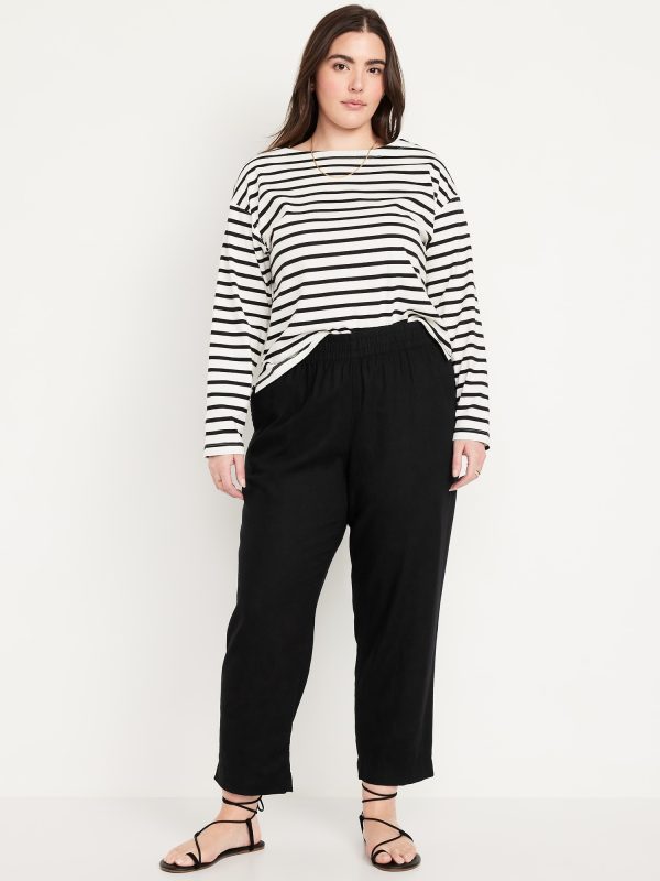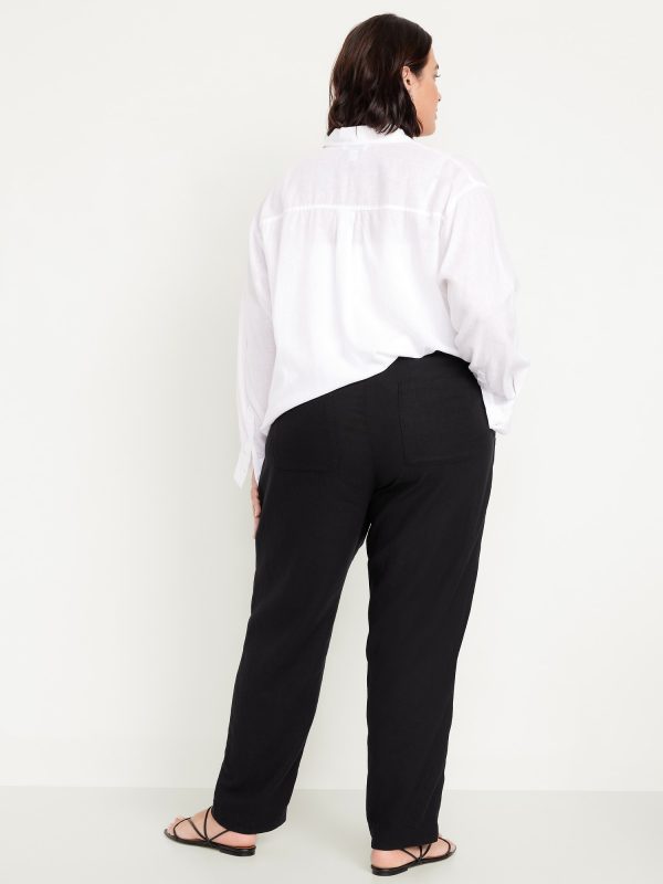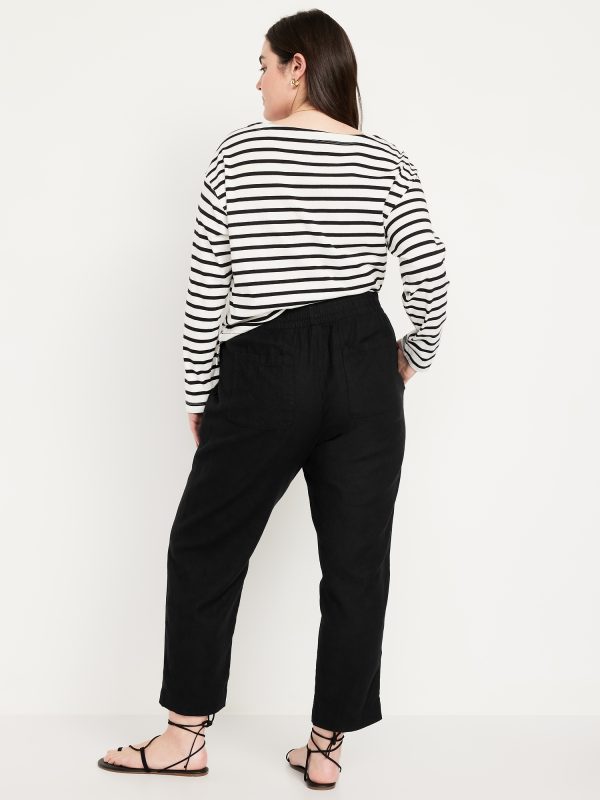 High-Waisted Linen-Blend Straight Ankle Pants: elasticized waistband, on-seam hip pockets, back patch pockets, straight leg, pull-on style, #683297