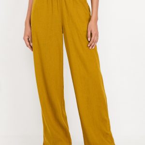 High-Waisted Linen-Blend Wide-Leg Pants: elastic-drawstring high waistband, on-seam hip pockets, super wide leg, easy pull-on style, online exclusive, #683345