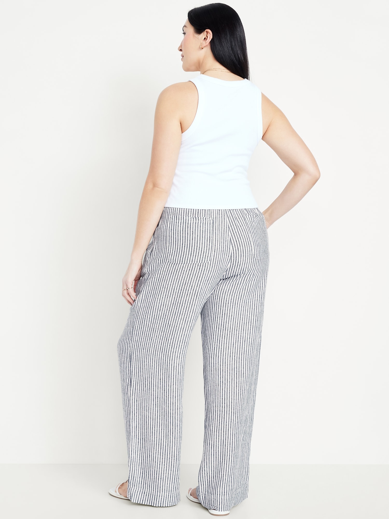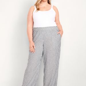 High-Waisted Linen-Blend Wide-Leg Pants: elastic-drawstring high waistband, on-seam hip pockets, super wide leg, easy pull-on style, online exclusive, #683345