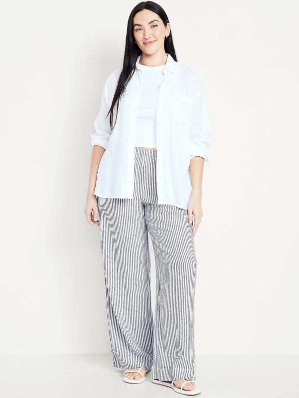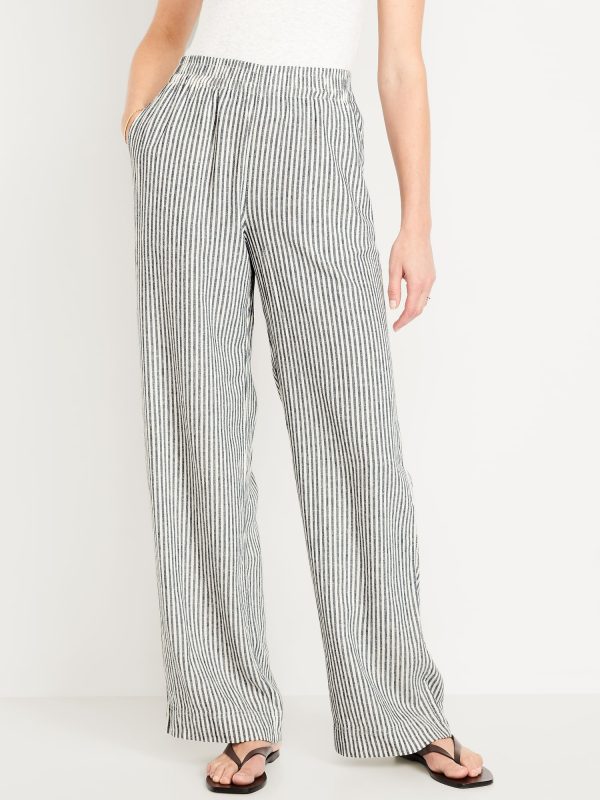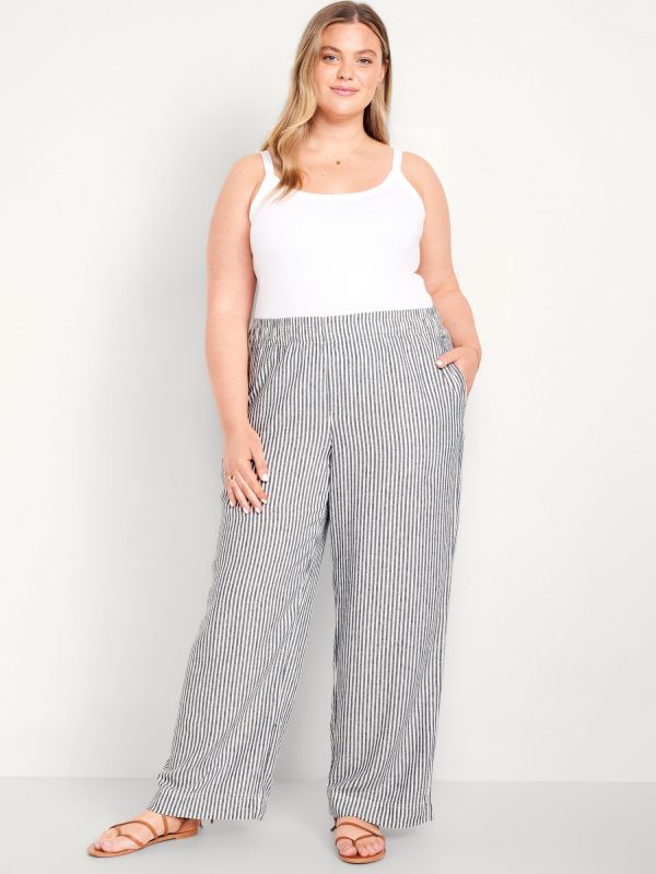 High-Waisted Linen-Blend Wide-Leg Pants: elastic-drawstring high waistband, on-seam hip pockets, super wide leg, easy pull-on style, online exclusive, #683345