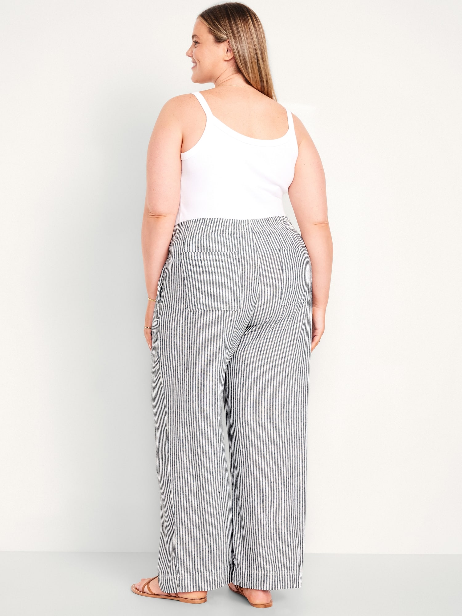 High-Waisted Linen-Blend Super Wide-Leg Pants: elastic-drawstring high waistband, on-seam hip pockets, super wide leg, easy pull-on style, online exclusive, #683345