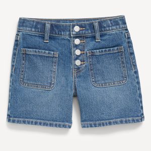 High-Waisted Mariner Midi Jean Shorts for Girls