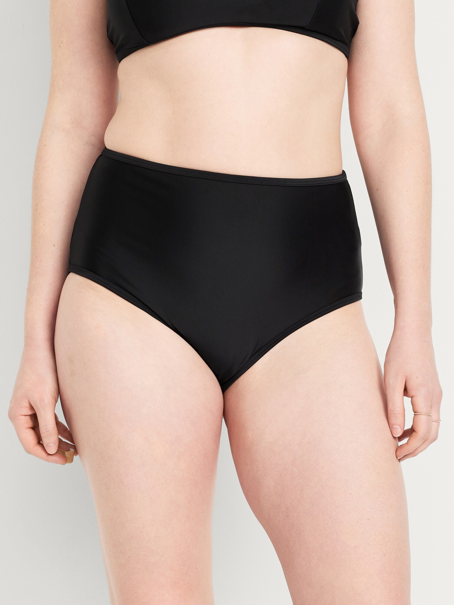 High-Waisted Matte Surf Bottoms: high waisted, elasticized leg openings, contrasting trim on select colors, #751320