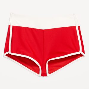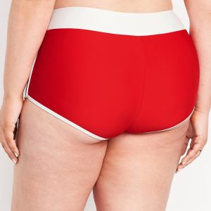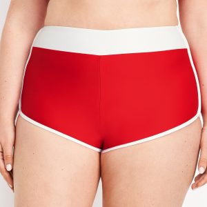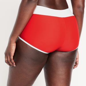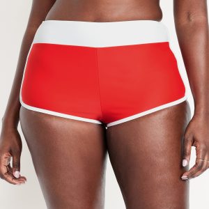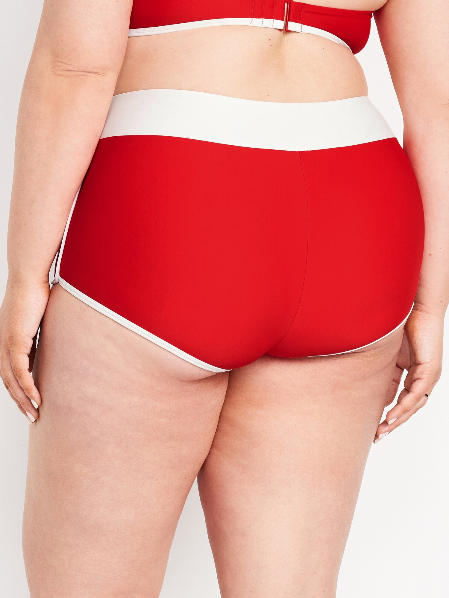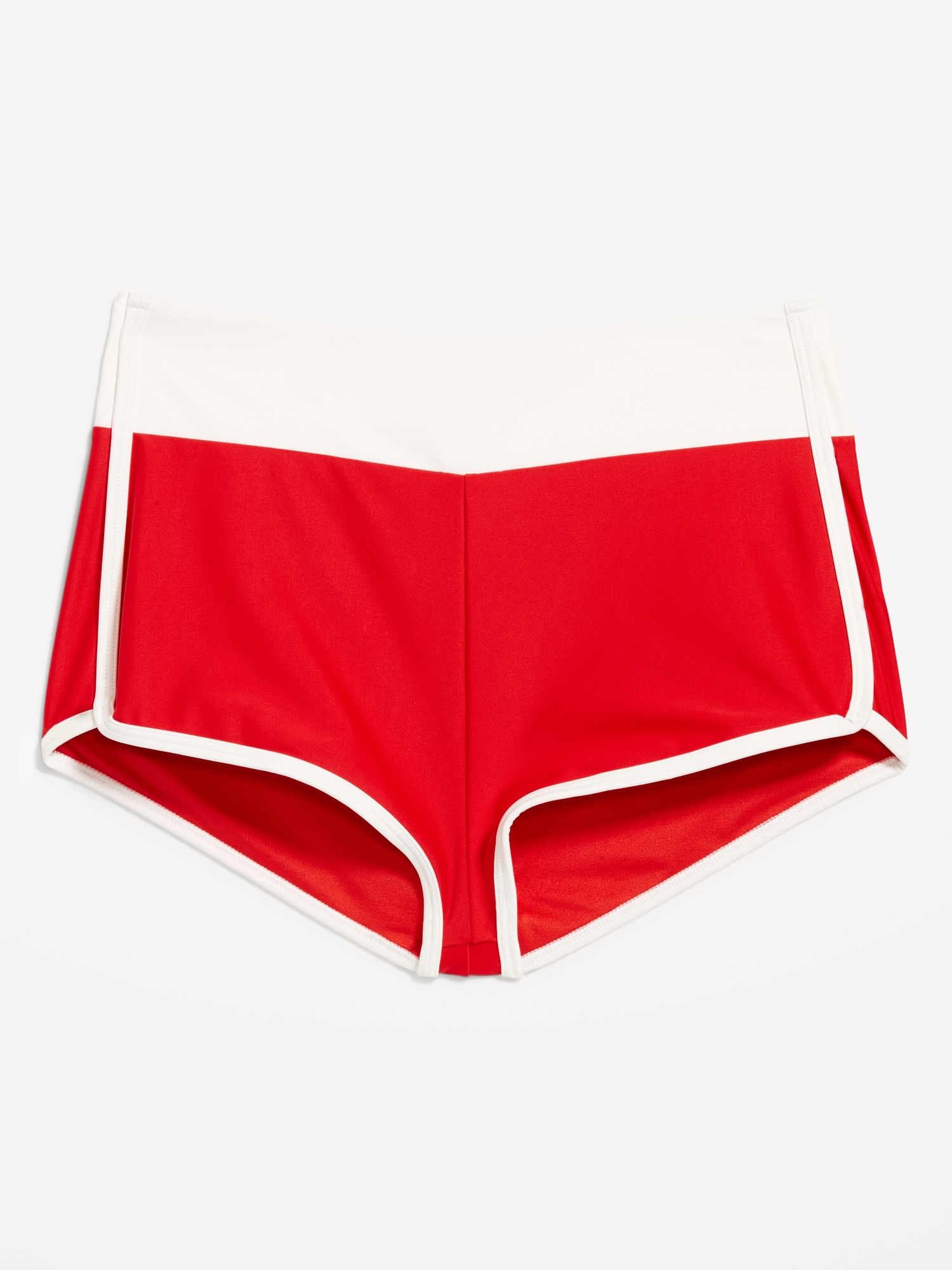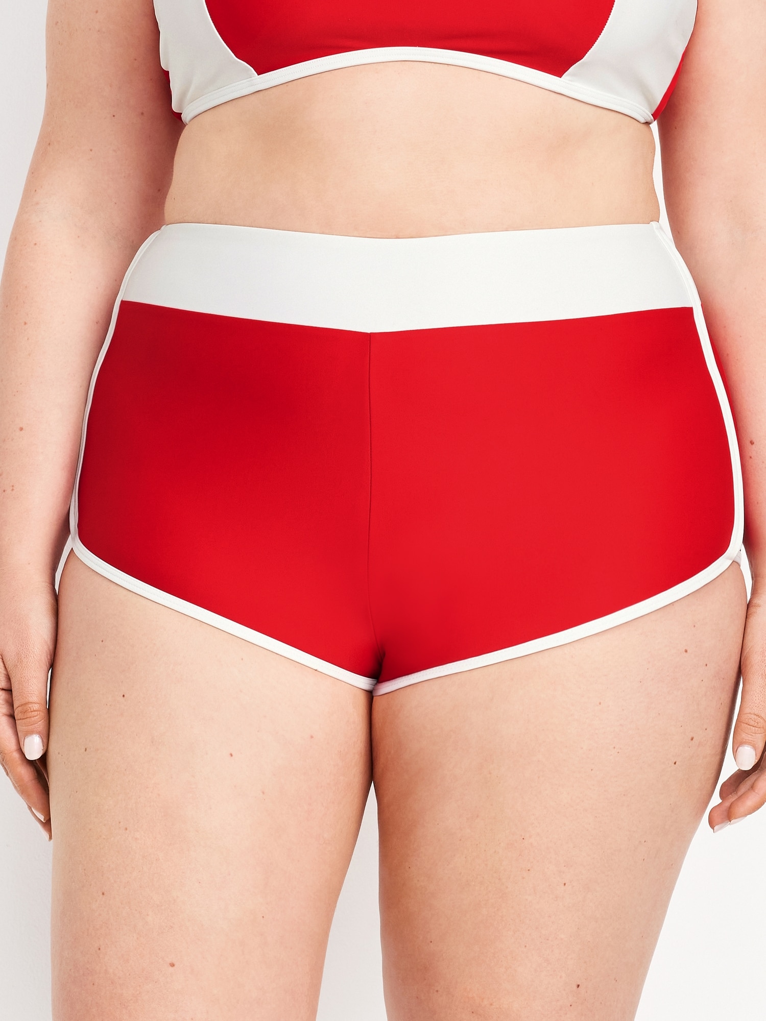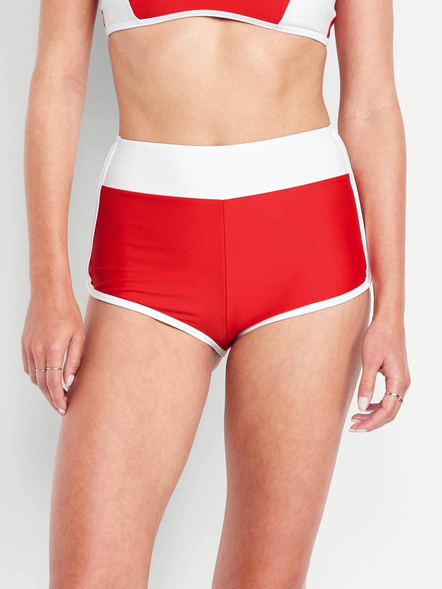 High-Waisted Matte Swim Shorts: high elastic waistband, dolphin hem, elastic leg openings, #747893
