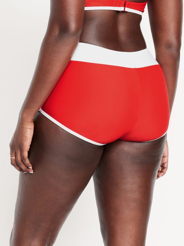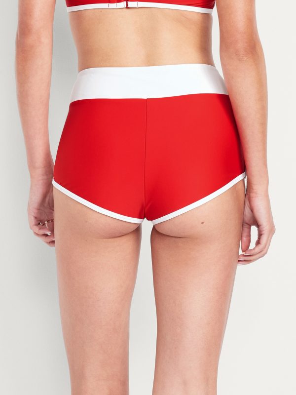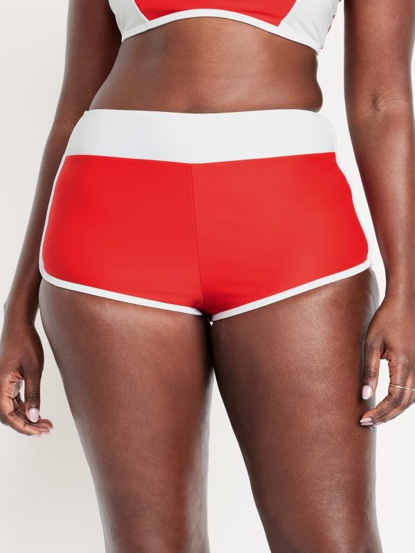 High-Waisted Matte Swim Shorts: high elastic waistband, dolphin hem, elastic leg openings, #747893