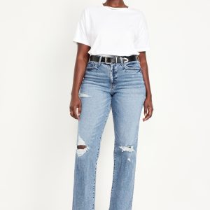 High-Waisted OG Loose Ripped Jeans: A loose take on our bestselling OG Straight.high waisted, zip fly, front scoop pockets, back patch pockets, ripped detail, #876627