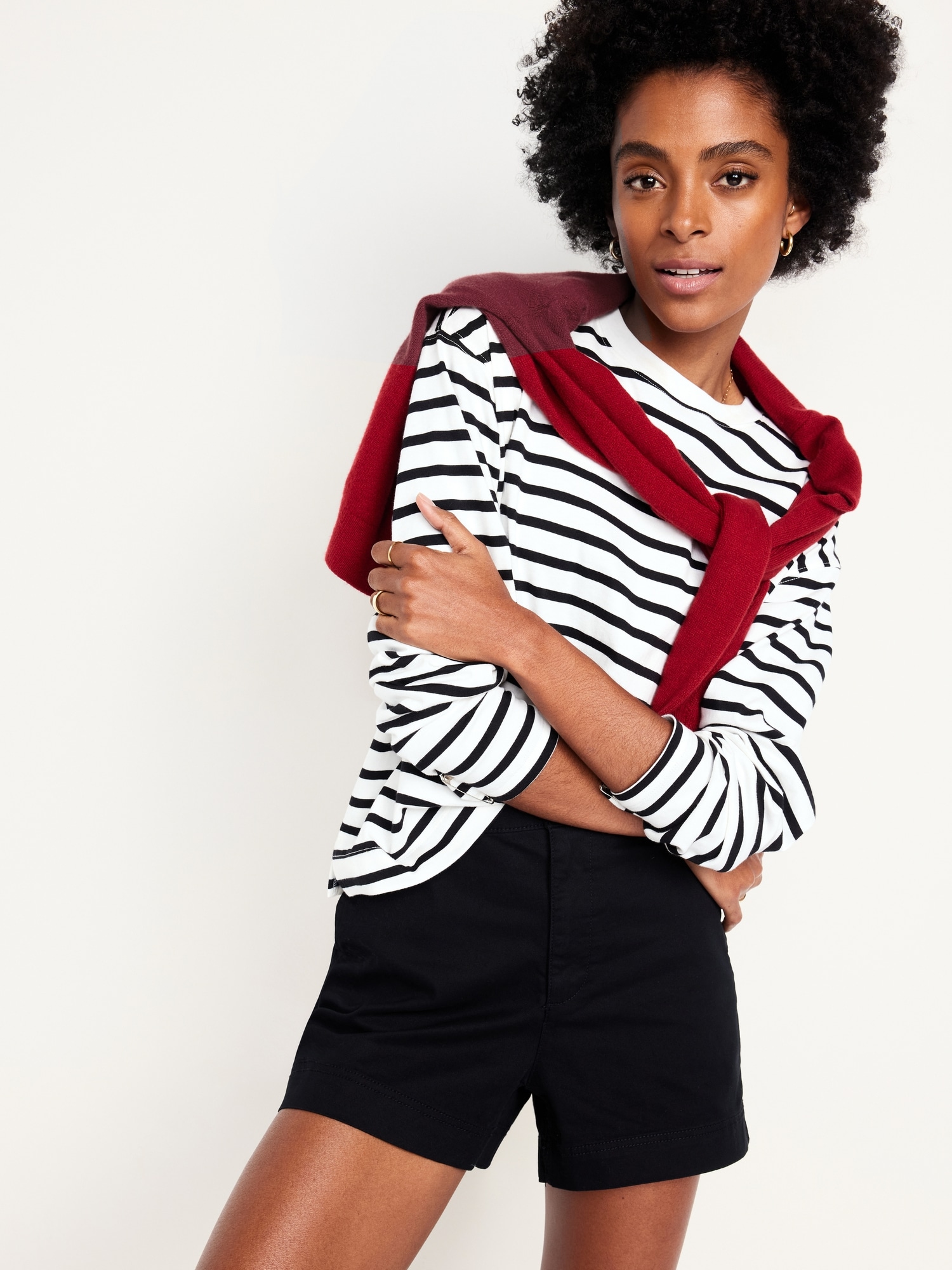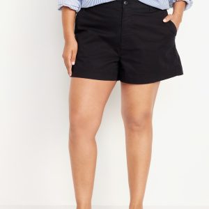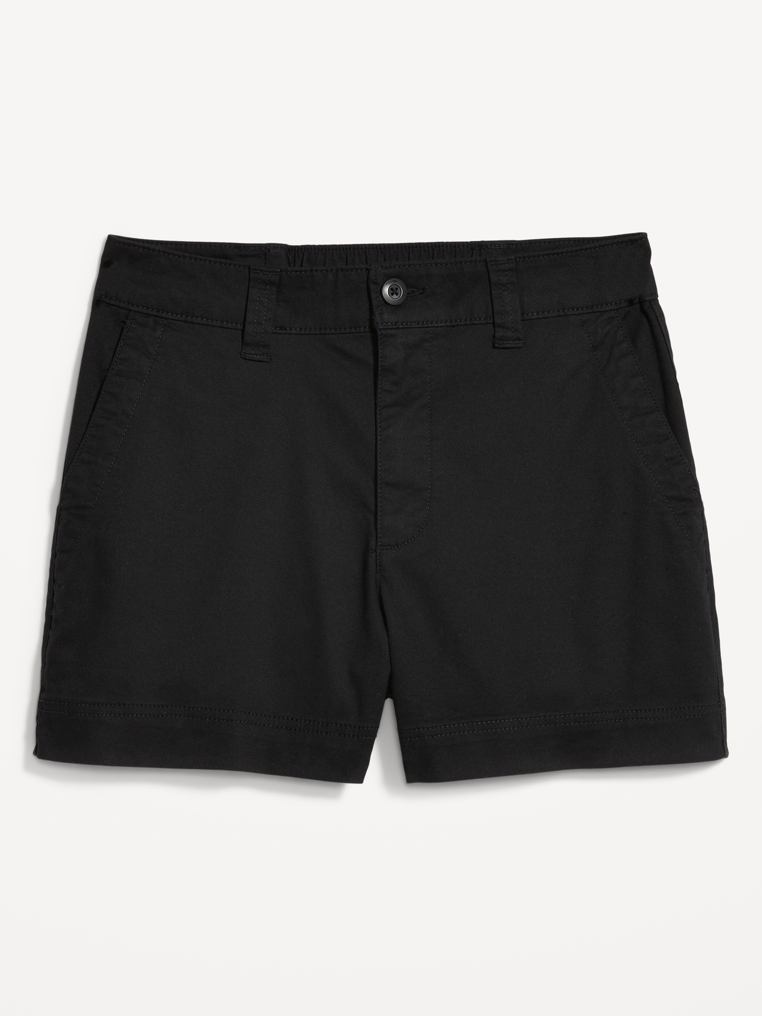 High-Waisted OGC Chino Shorts — 3.5-inch inseam: elasticized back waist, button front, belt loops, zip fly, diagonal front pockets, back patch pockets, #423004