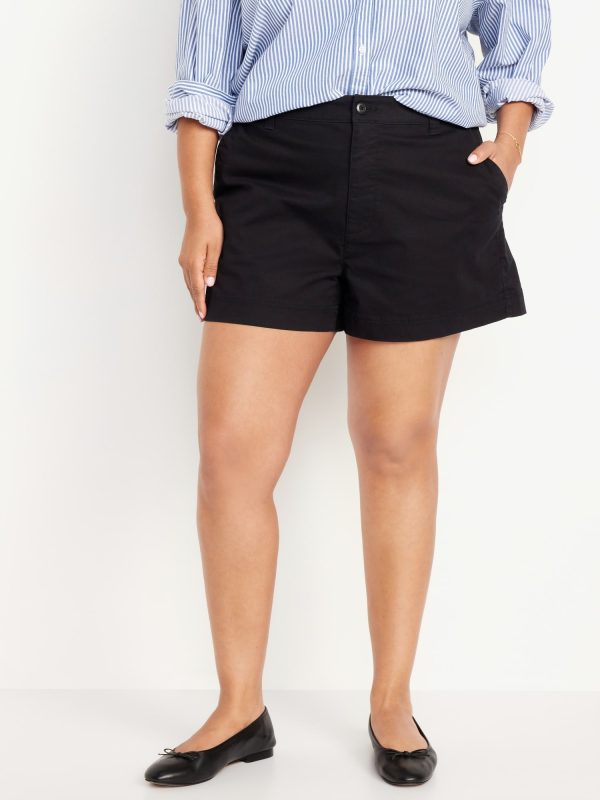 High-Waisted OGC Chino Shorts — 3.5-inch inseam: elasticized back waist, button front, belt loops, zip fly, diagonal front pockets, back patch pockets, #423004
