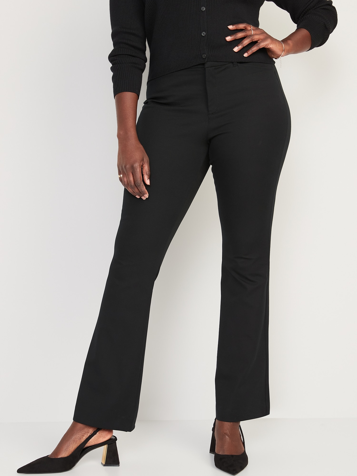 High-Waisted Pixie Flare Pants: The stretchy profesh pant you love, with just enough flare.belt loops, hook-and-bar closure, interior button, zip fly, front pockets, faux-welt back pockets, online exclusive, available in maternity sizes, #611133