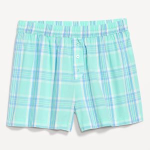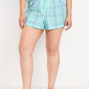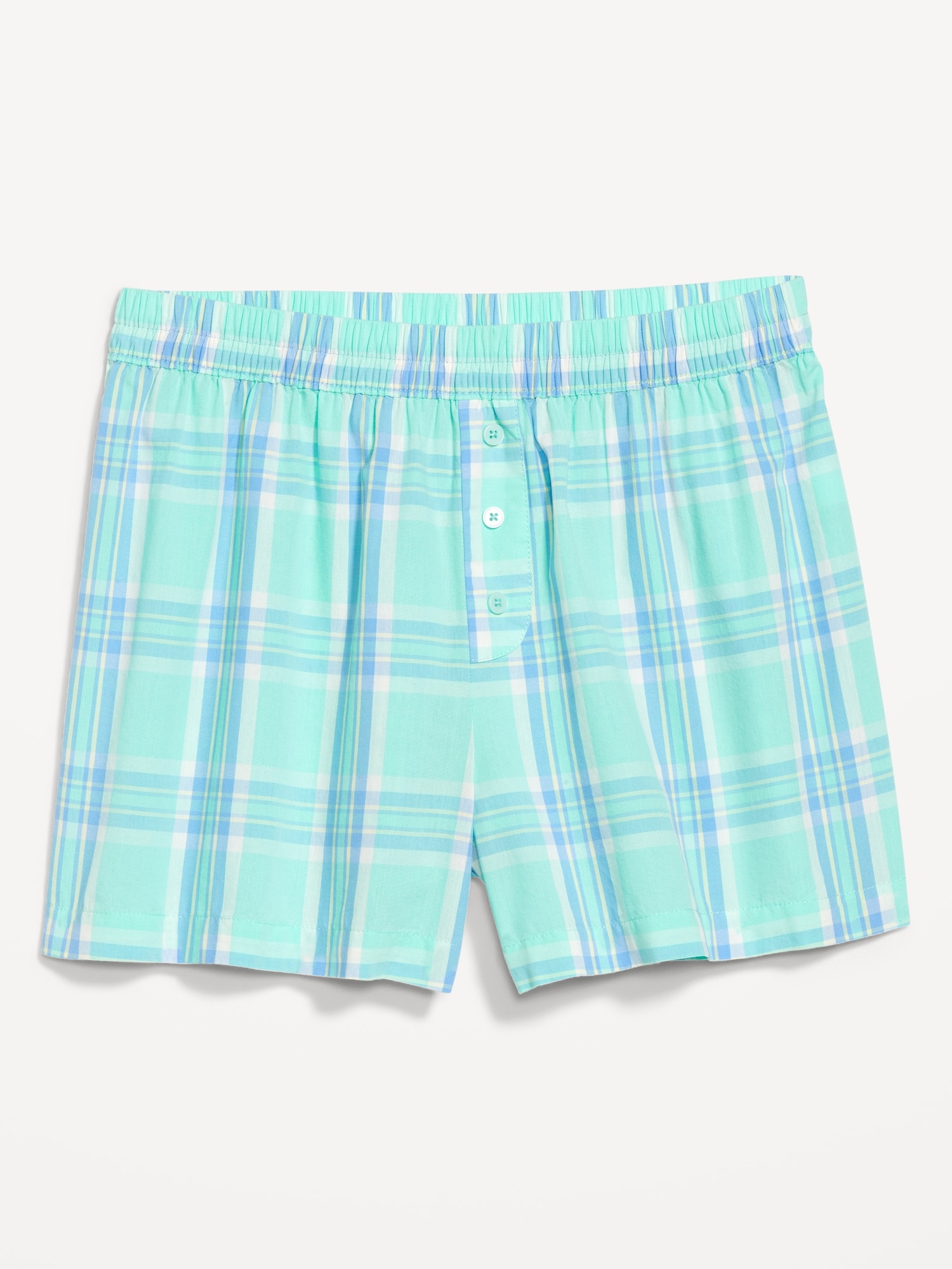 High-Waisted Poplin Boxer Pajama Shorts: elastic waistband, decorative button fly, plaid print, #798497