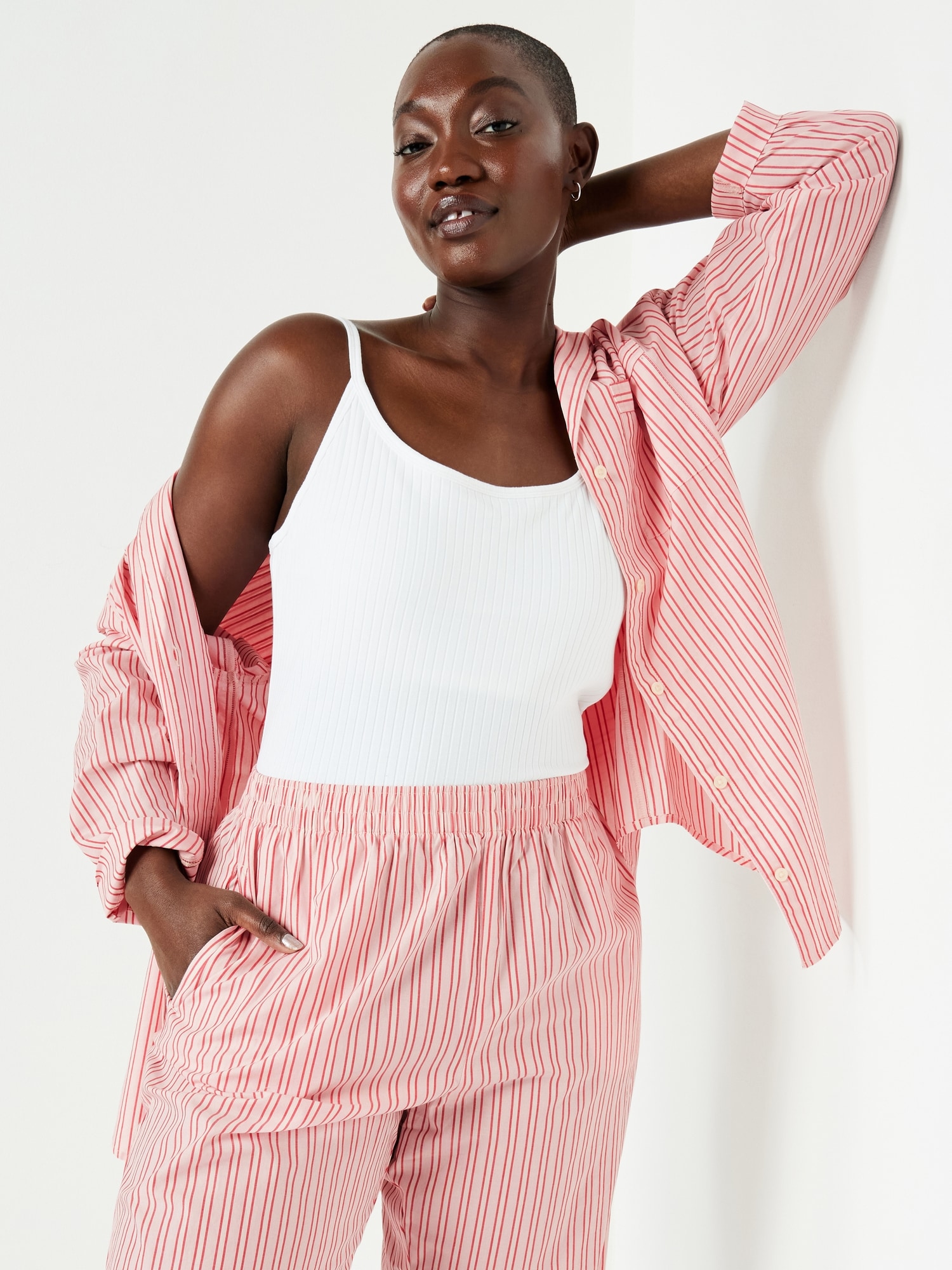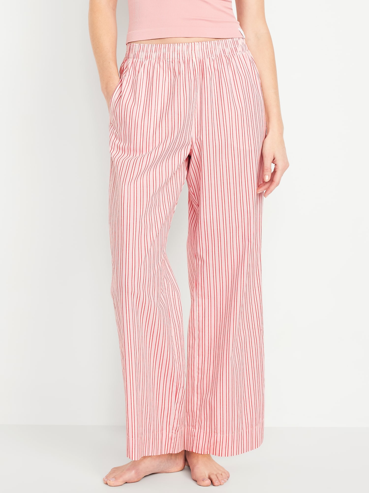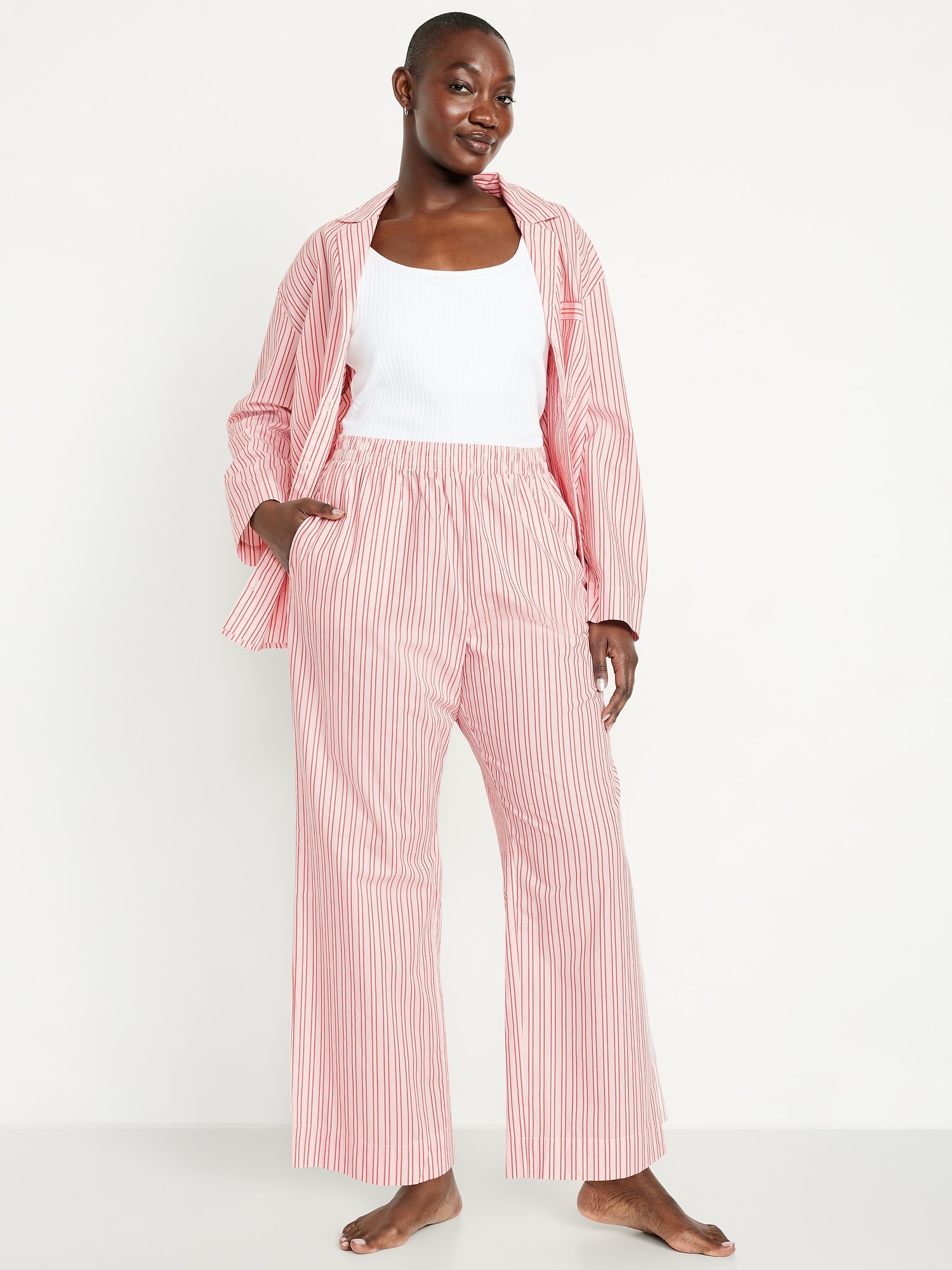 High-Waisted Poplin Pajama Pant: Crisp, breathable cotton that’s classic for a reason.elastic waist, three-button fly, prints match back to the fam, #889319
