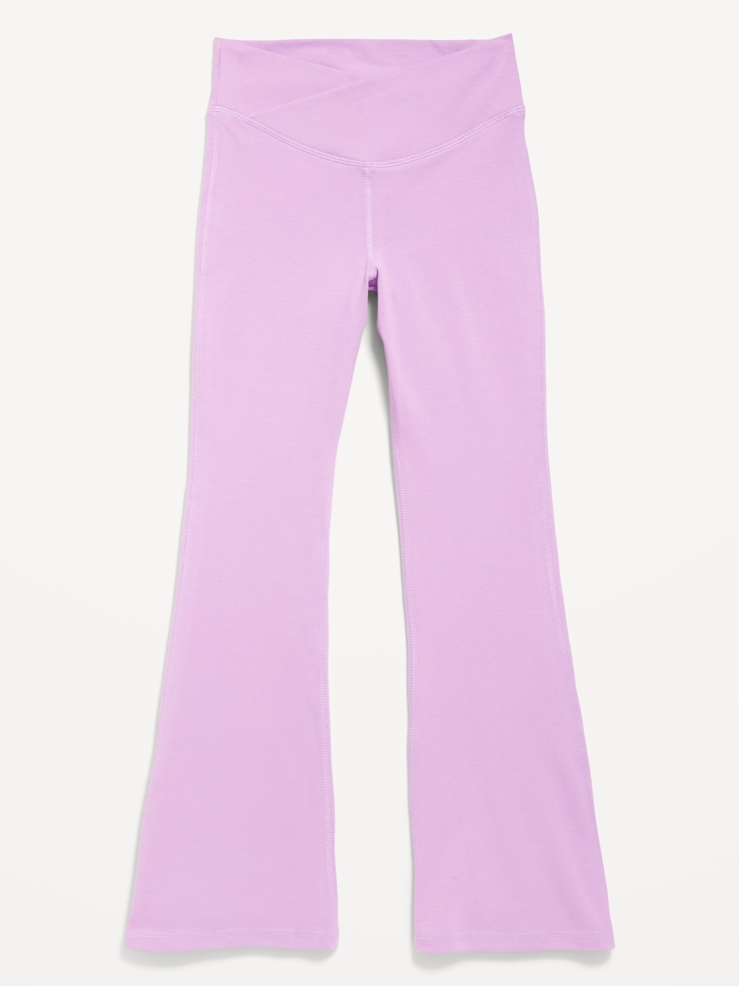 High-Waisted PowerChill Crossover Flared Leggings for Girls: Online exclusive!, Super-soft & super-stretchy, PowerChill leggings strike the perfect balance between workout and chillout✌️, High-rise wrap-front waistband, with light-reflecting Old Navy Active logo at center back., Flared hem., Soft, breathable light compression jersey holds her in while letting her vent., Go-Dry moisture-wicking technology keeps her dry & comfortable., Flat-lock seams prevent chafing., #420129