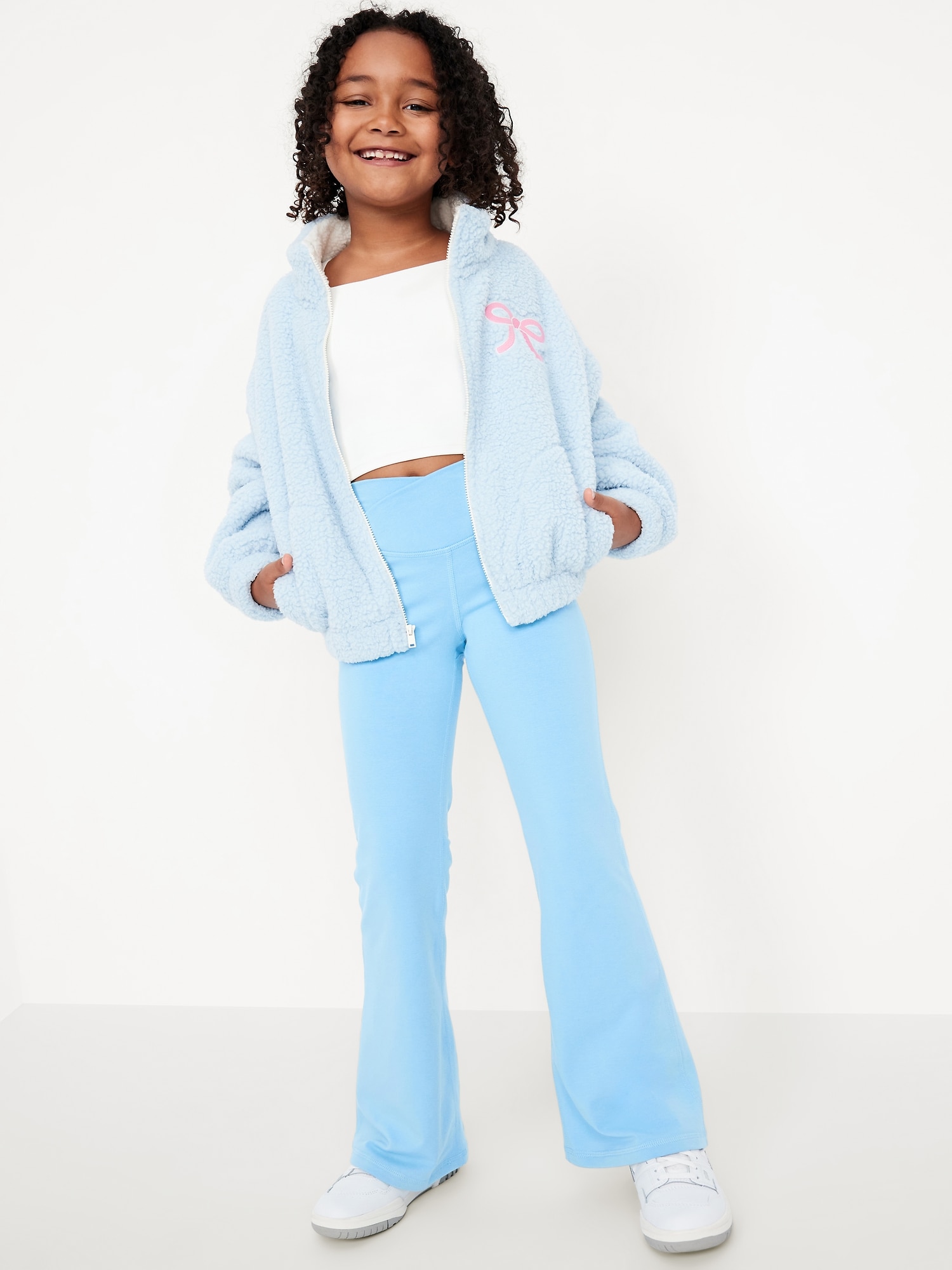 High-Waisted PowerChill Crossover Flared Leggings for Girls: elasticized crossover waistband, flared hem, #782504