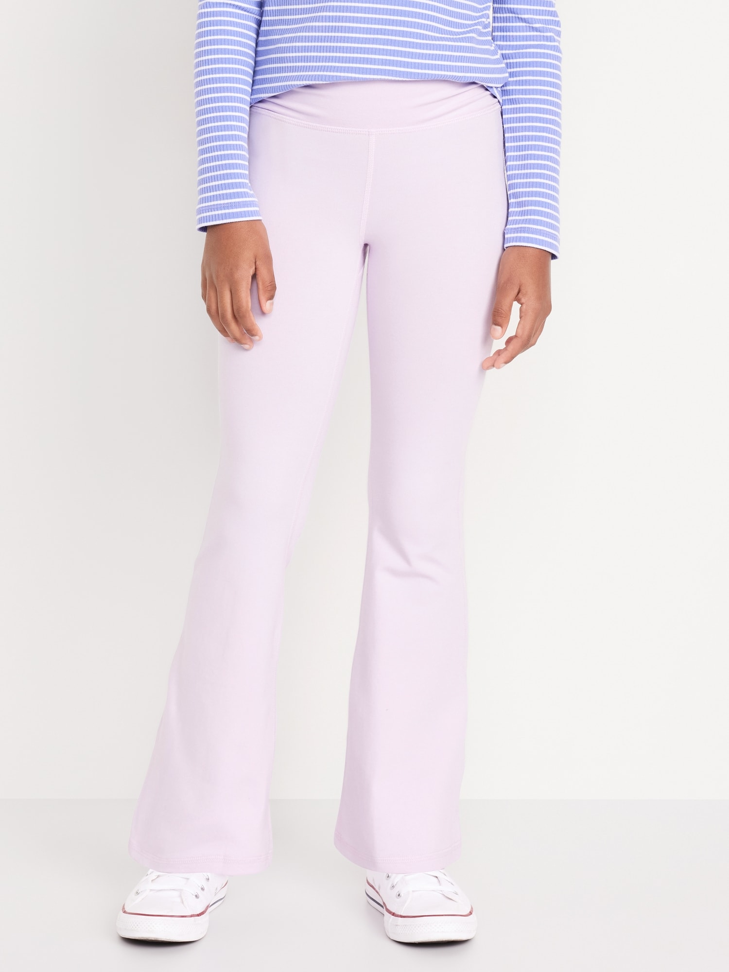 High-Waisted PowerChill Side-Ruched Flared Leggings for Girls: elasticized waistband, ruching at waist, flared hem, #782503