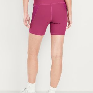 High-Waisted PowerSoft Biker Shorts — 6-inch inseam: Featuring PowerSoft. Light compression meets a peachy-smooth, sweat-wicking fabric.pull-on waist, side pocket fits your phone, go-dry wicks moisture, #662948