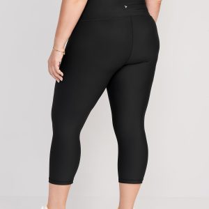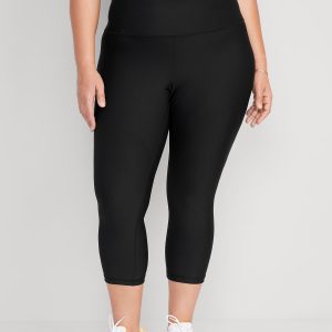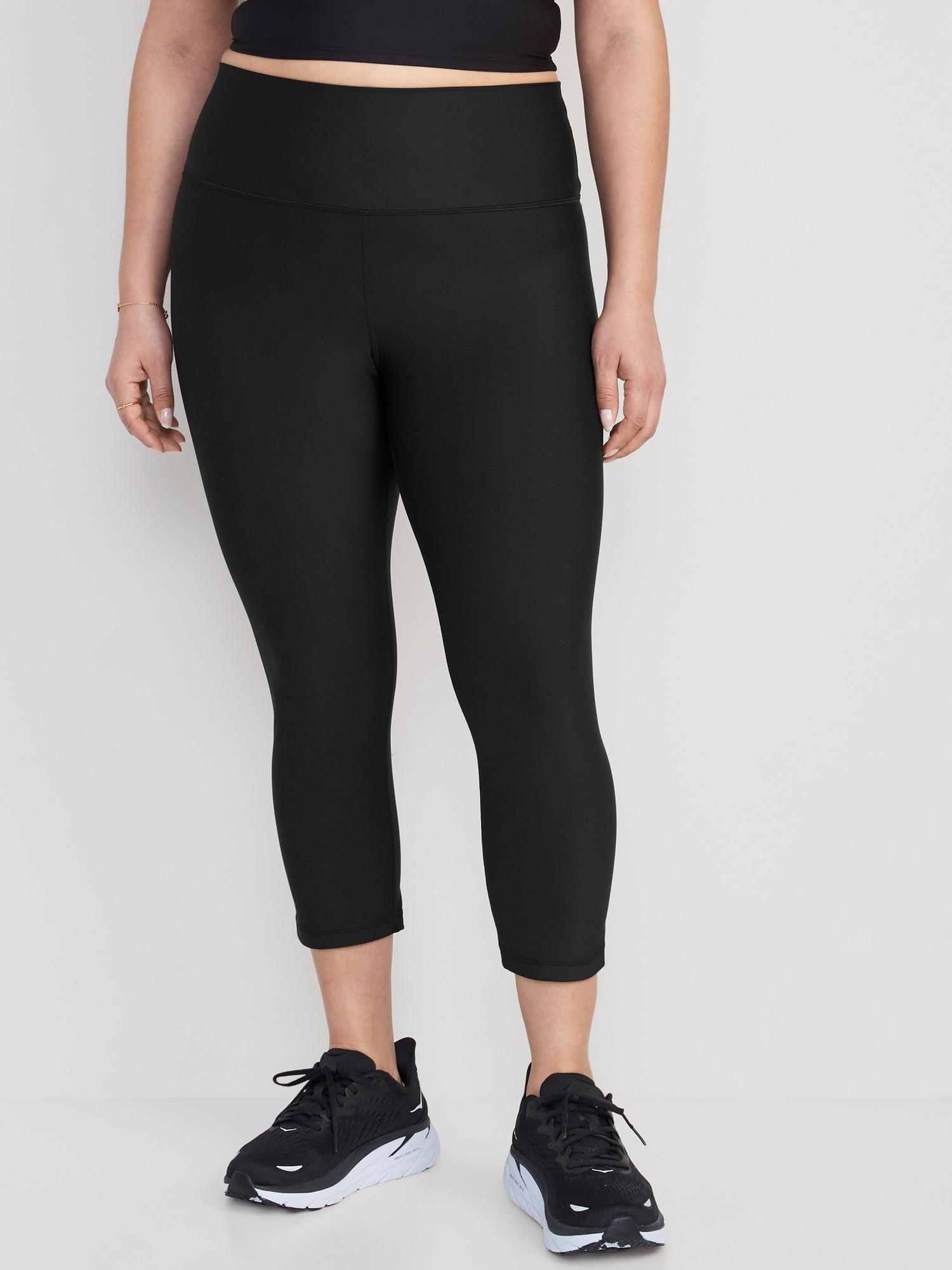 High-Waisted PowerSoft Crop Leggings: Featuring PowerSoft. Light compression meets a peachy-smooth, sweat-wicking fabric.elasticized waist, breathable, go-dry wicks moisture, #664727