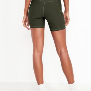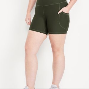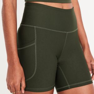 High-Waisted PowerSoft Pocket Biker Shorts — 6-inch inseam: Featuring PowerSoft. Light compression meets a peachy-smooth, sweat-wicking fabric.pull-on waist, side pocket fits your phone, go-dry wicks moisture, #662948