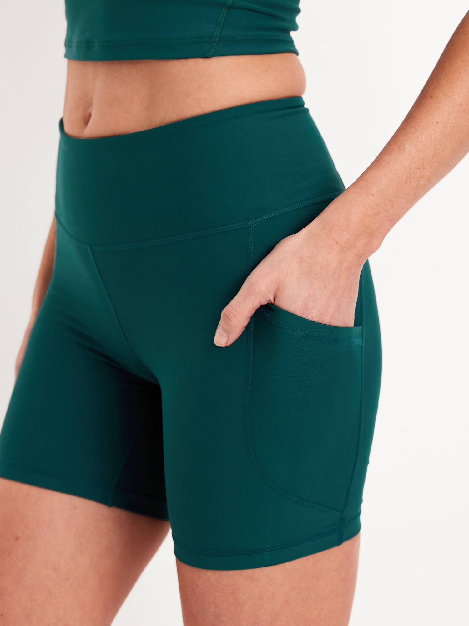 High-Waisted PowerSoft Pocket Biker Shorts — 6-inch inseam