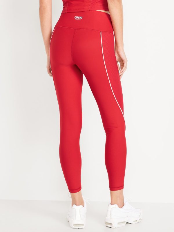 High-Waisted PowerSoft Rib Mix 7/8 Leggings: Featuring PowerSoft. Light compression meets a peachy-smooth, sweat-wicking fabric.ribbed side panels, contrasting piping, go-dry wicks moisture, #749127