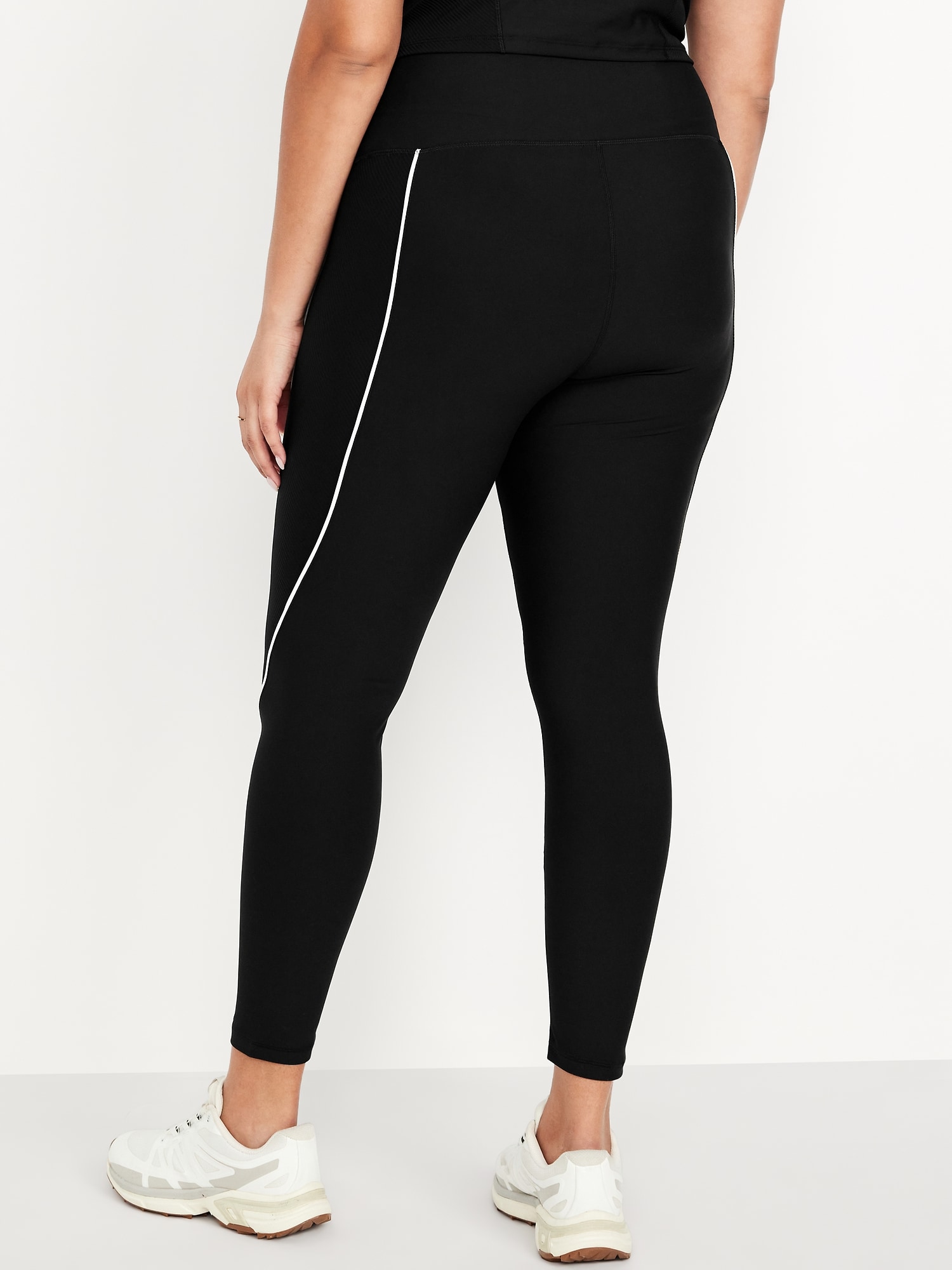 High-Waisted PowerSoft Rib Mix 7/8 Leggings: Featuring PowerSoft. Light compression meets a peachy-smooth, sweat-wicking fabric.ribbed side panels, contrasting piping, go-dry wicks moisture, #749127
