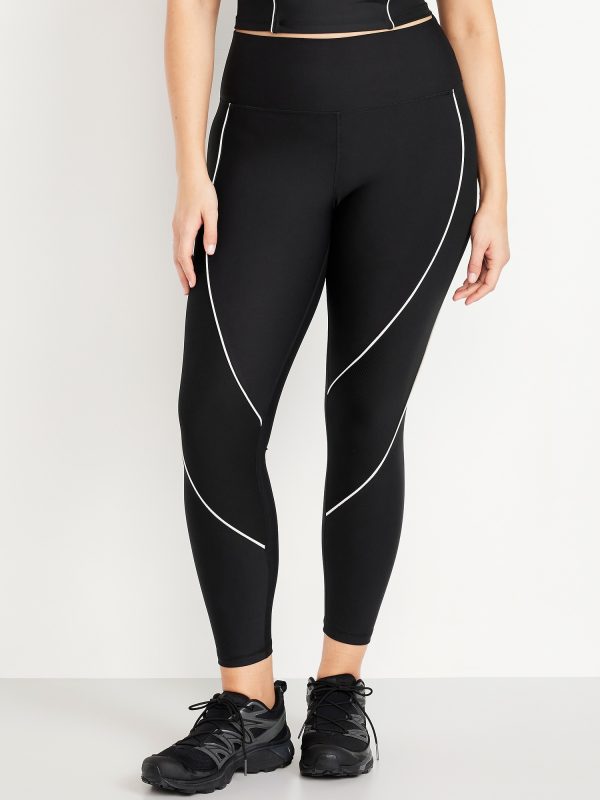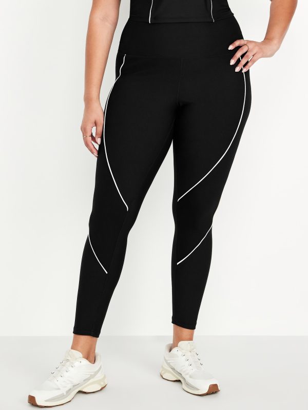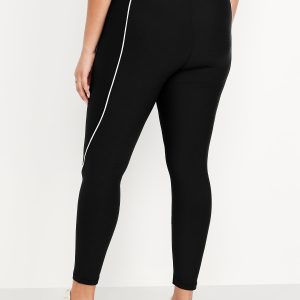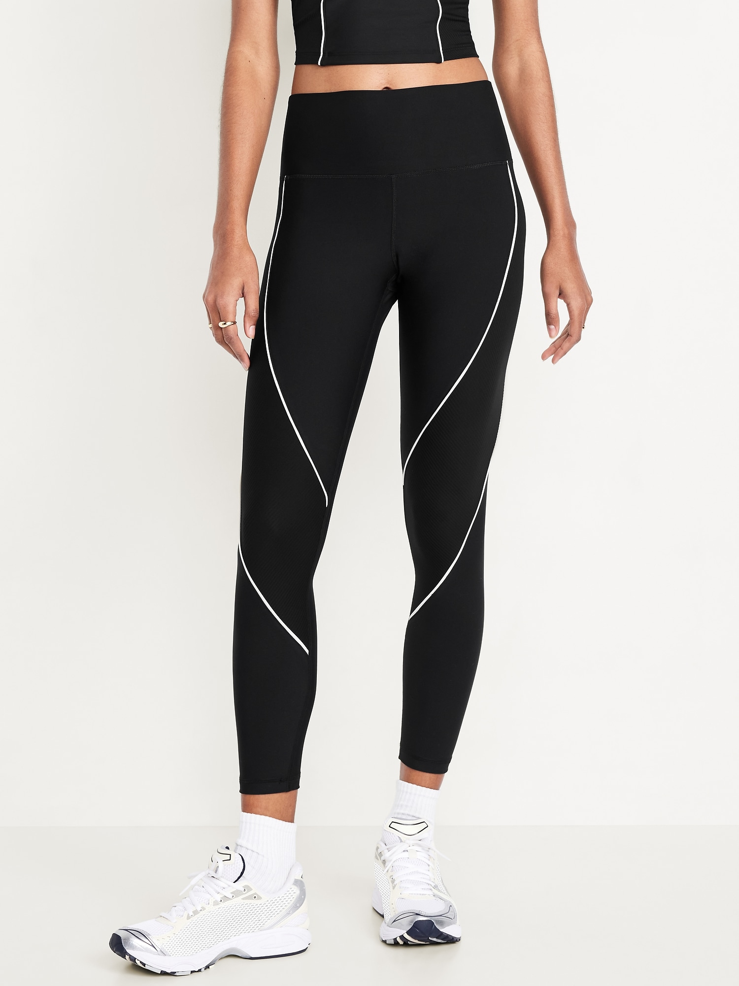 High-Waisted PowerSoft Rib Mix 7/8 Leggings: Featuring PowerSoft. Light compression meets a peachy-smooth, sweat-wicking fabric.ribbed side panels, contrasting piping, go-dry wicks moisture, #749127