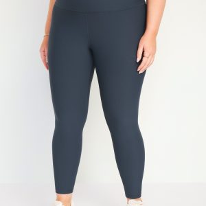 High-Waisted PowerSoft Rib Mix 7/8 Leggings: Featuring PowerSoft. Light compression meets a peachy-smooth, sweat-wicking fabric.ribbed side panels, contrasting piping, go-dry wicks moisture, #749127