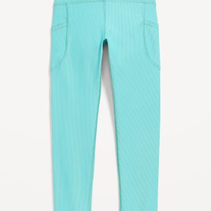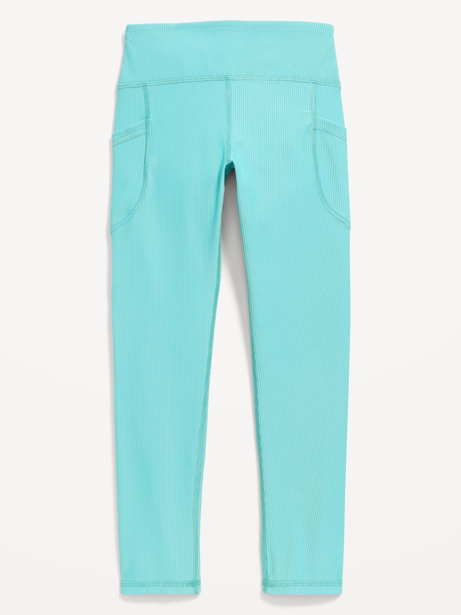 High-Waisted PowerSoft Ribbed Performance 7/8 Leggings for Girls: elasticized waistband, high-rise, light-reflecting logo at back, side pockets, #762169