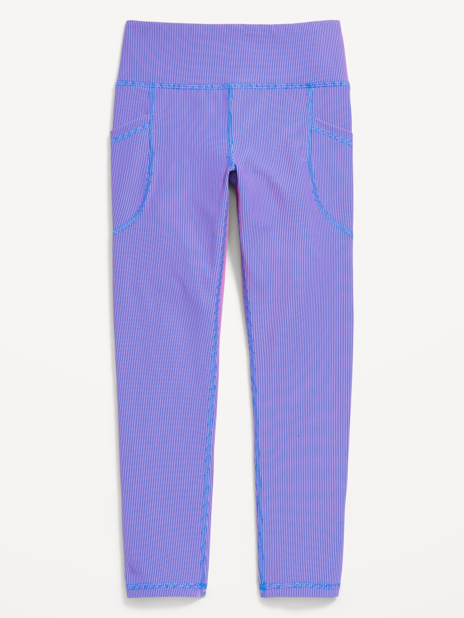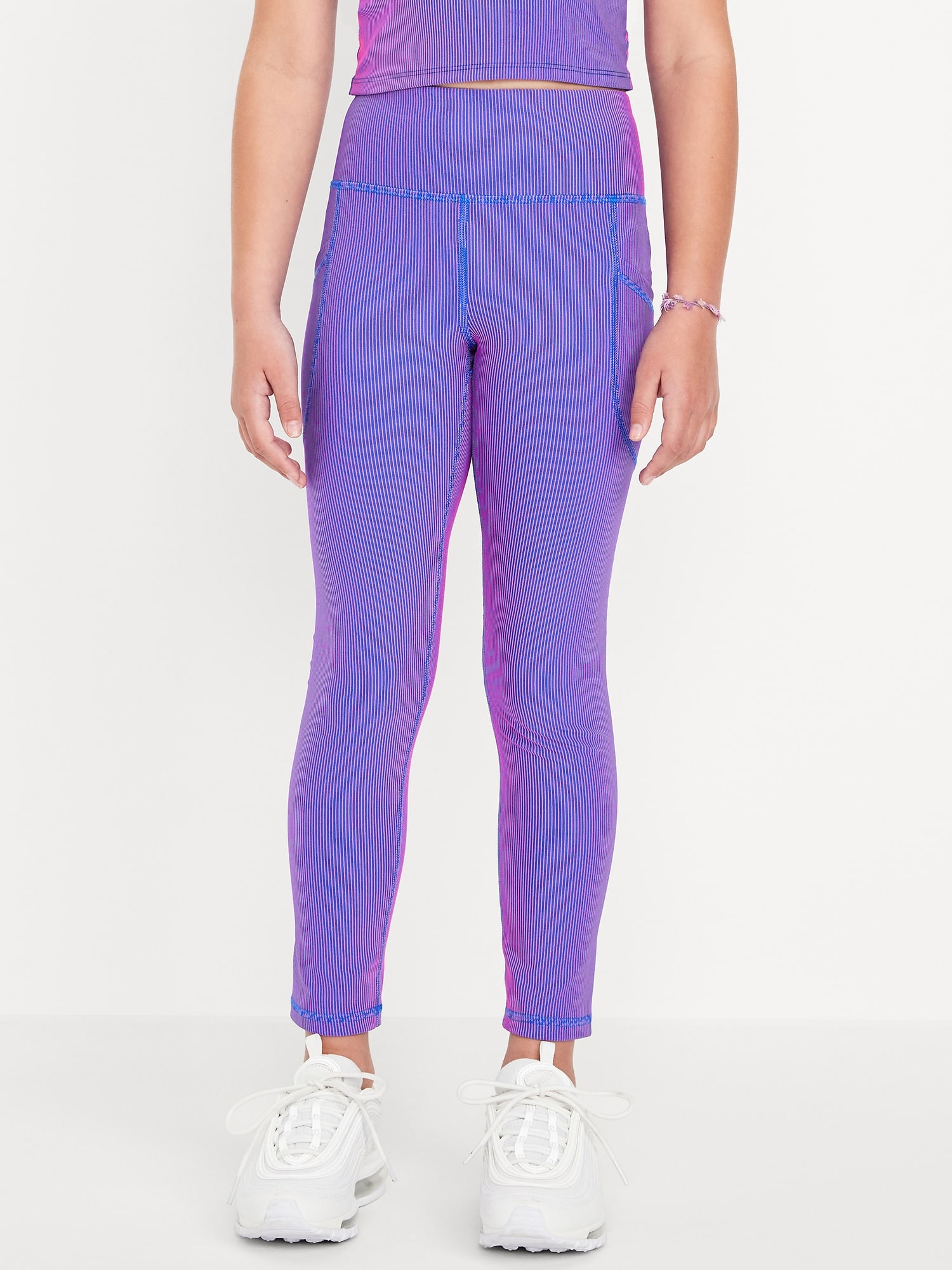 High-Waisted PowerSoft Ribbed Performance 7/8 Leggings for Girls: elasticized waistband, high-rise, light-reflecting logo at back, side pockets, #762169