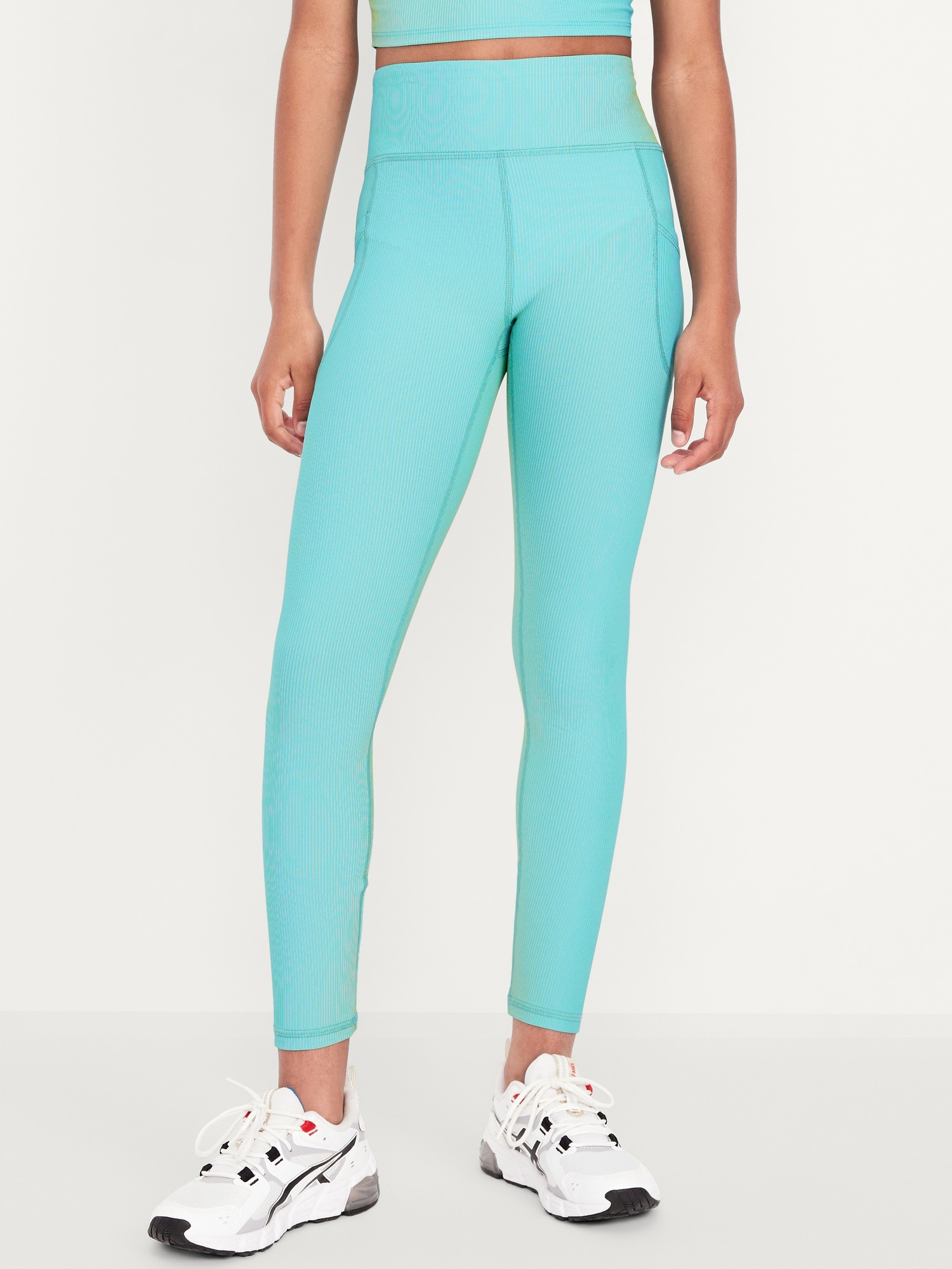 High-Waisted PowerSoft Ribbed Performance 7/8 Leggings for Girls